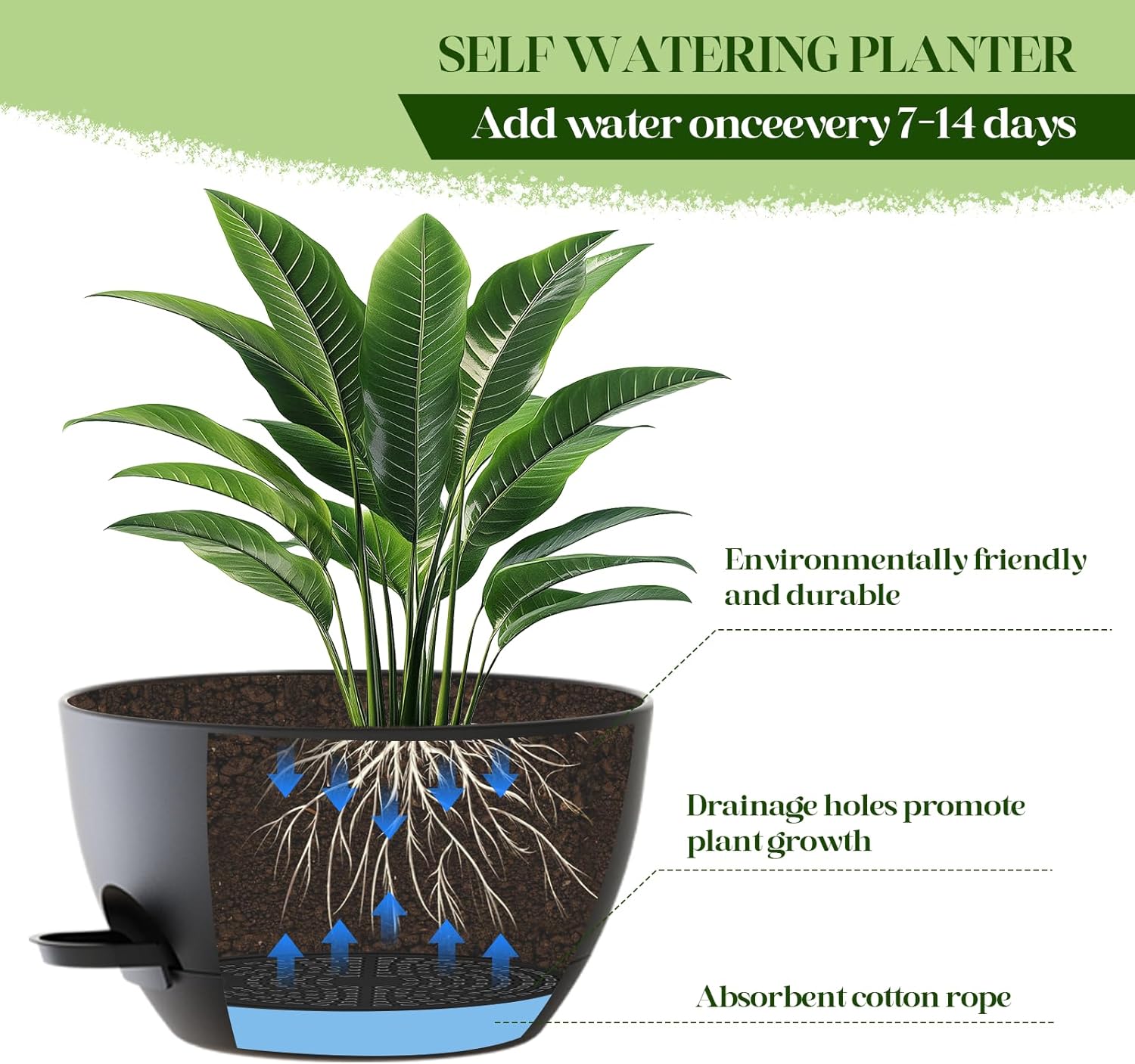 - β 2 Large Self-Watering Planters: Double the value! Includes two 10-inch wide plastic hanging planters with built-in self-watering reservoirs to reduce the need for frequent watering and keep plants healthier.