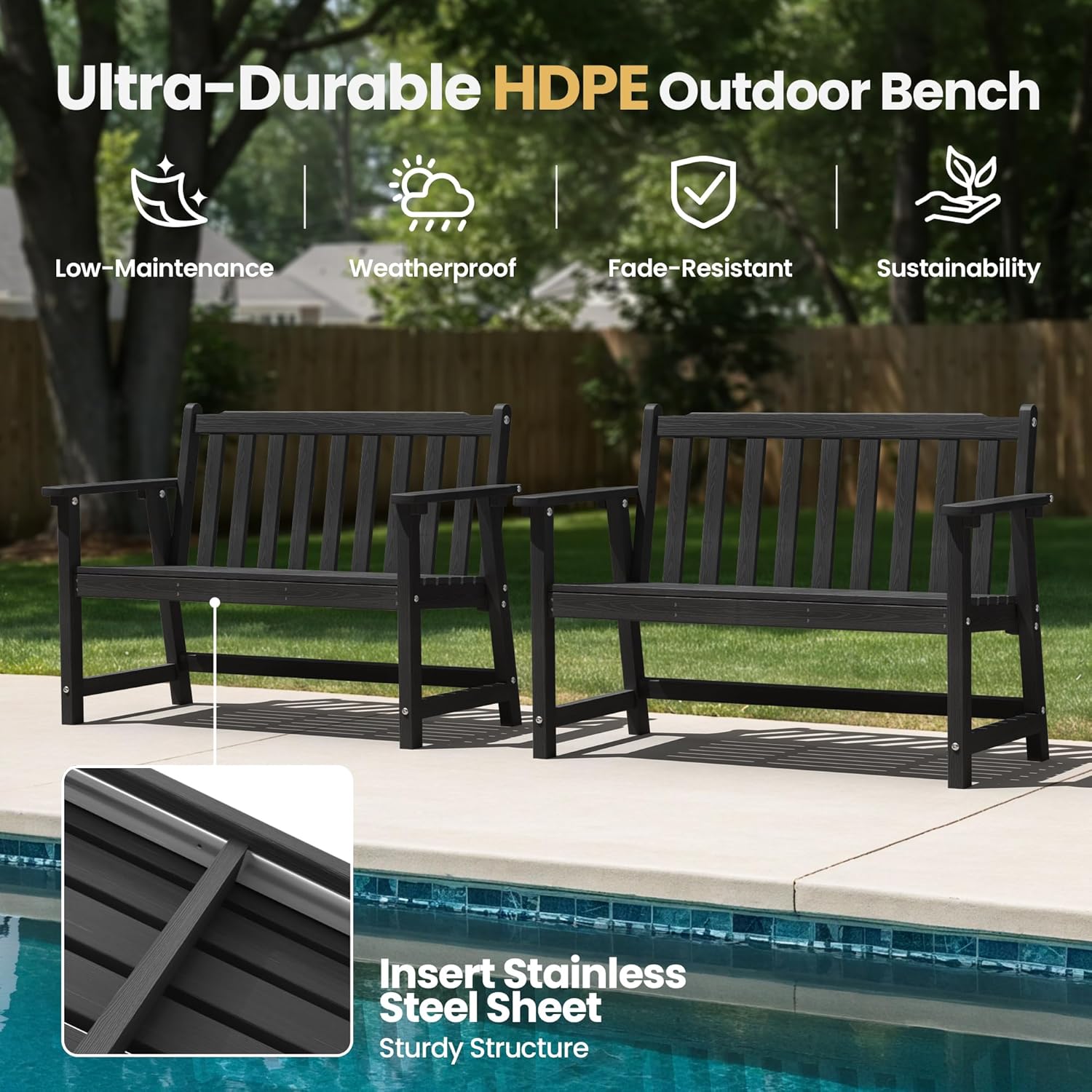 - 【All-Weather HDPE】: Ciokea outdoor bench is constructed from high-density polyethylene (HDPE), ensuring it withstands rain, UV rays, and temperature changes without cracking or rusting