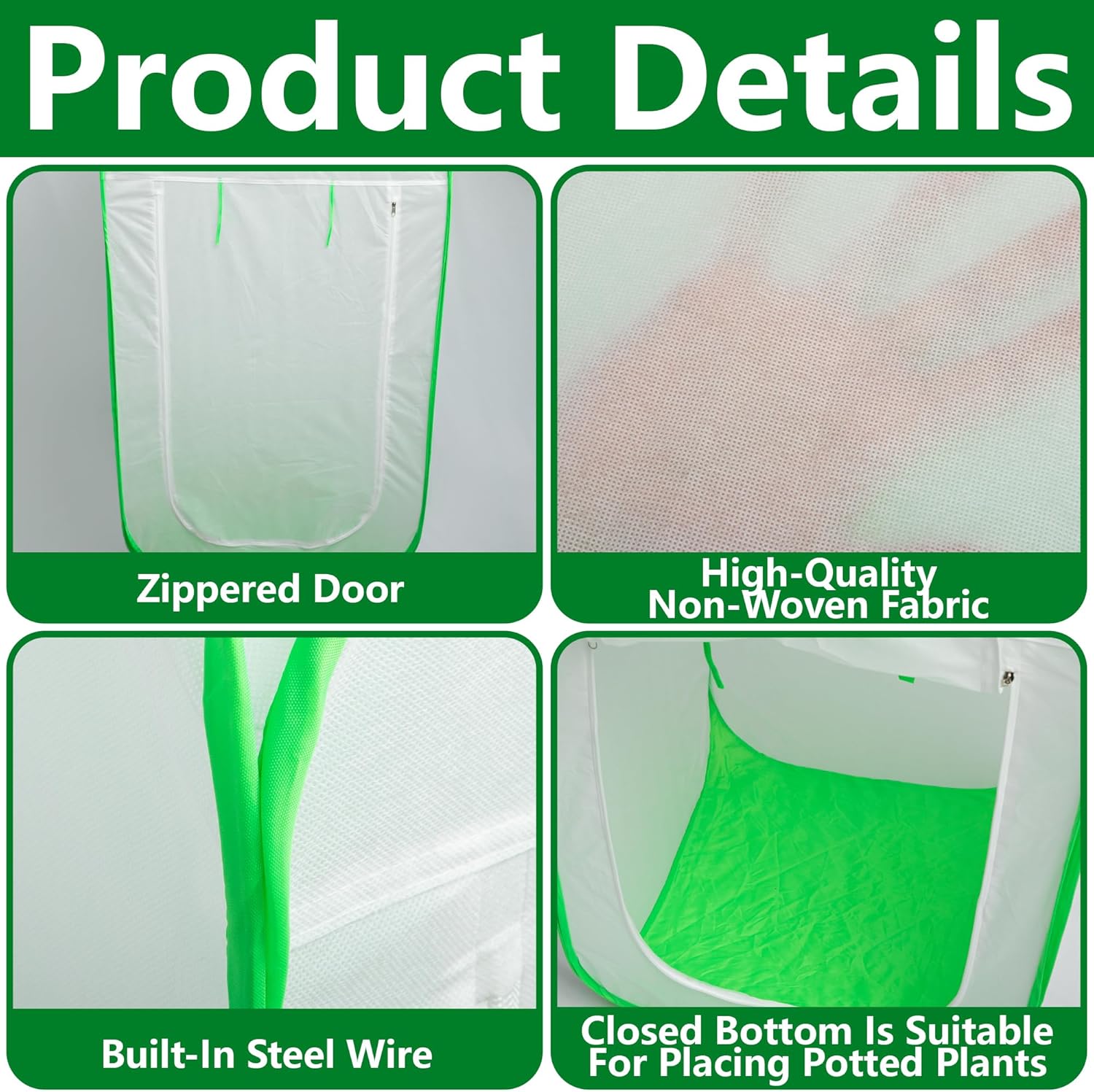 - Convenient Design: Zipper door design is easy to open or close, large opening is convenient for plants to enter, water, fertilize, ventilate or regulate temperature, the closed bottom is suitable for placing potted plants; It also makes it convenient to observe the changes in plant growth.