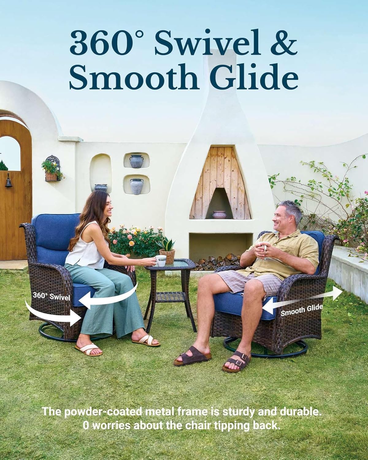 HILLGA Luxury Patio Furniture Set with 6-Inch Thick Cushions, High Back Outdoor Swivel Rocker Chairs, 2-Piece All Weather Conversation Set for Porch Deck Balcony Yard, Blue (V3)