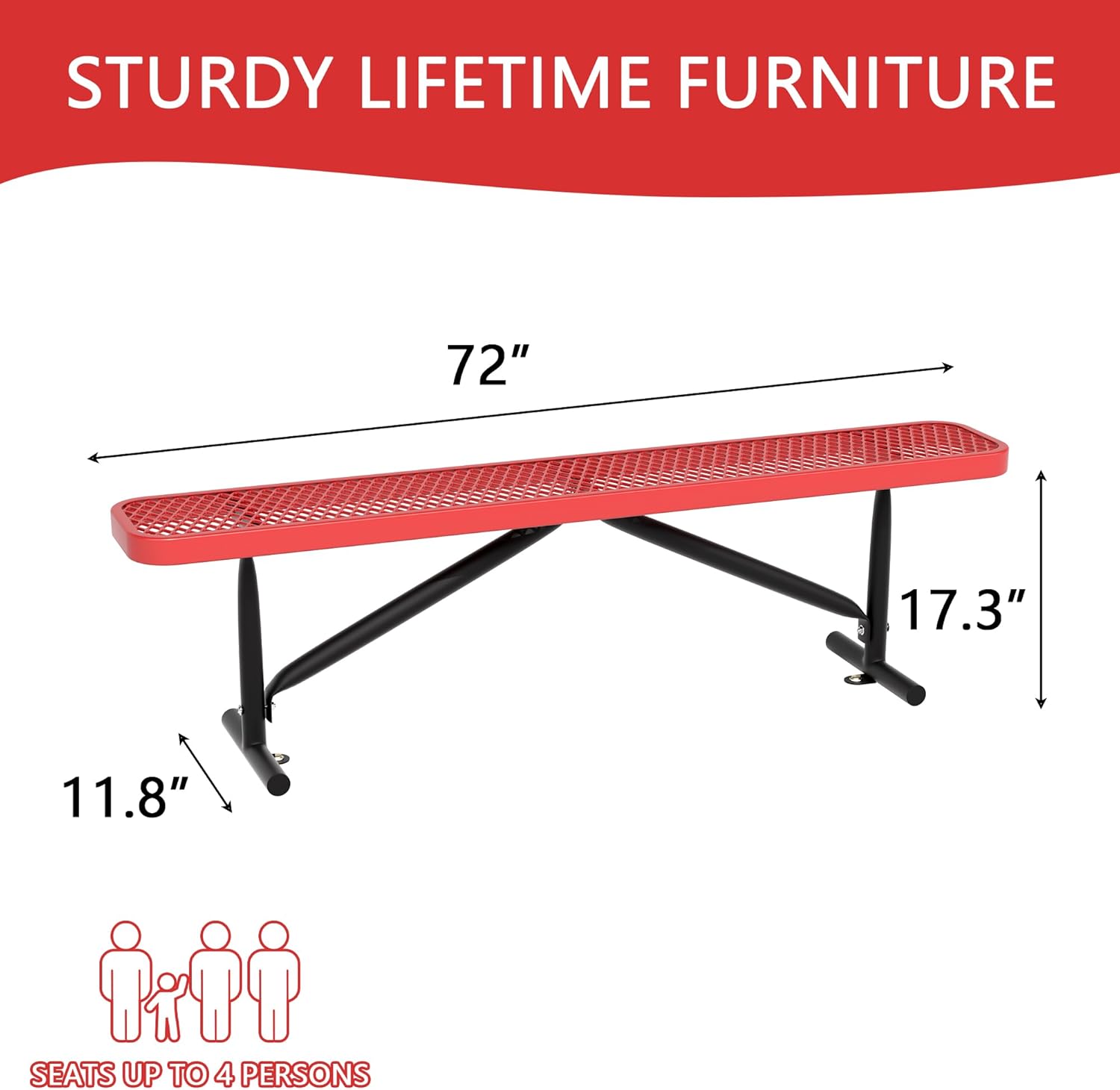 6 Feet Heavy Duty Metal Park Bench for Outside, Outdoor Bench with Portable Frame, Commercial Benches for Shopping Mall, Store, Park, Patio, Deck, Red