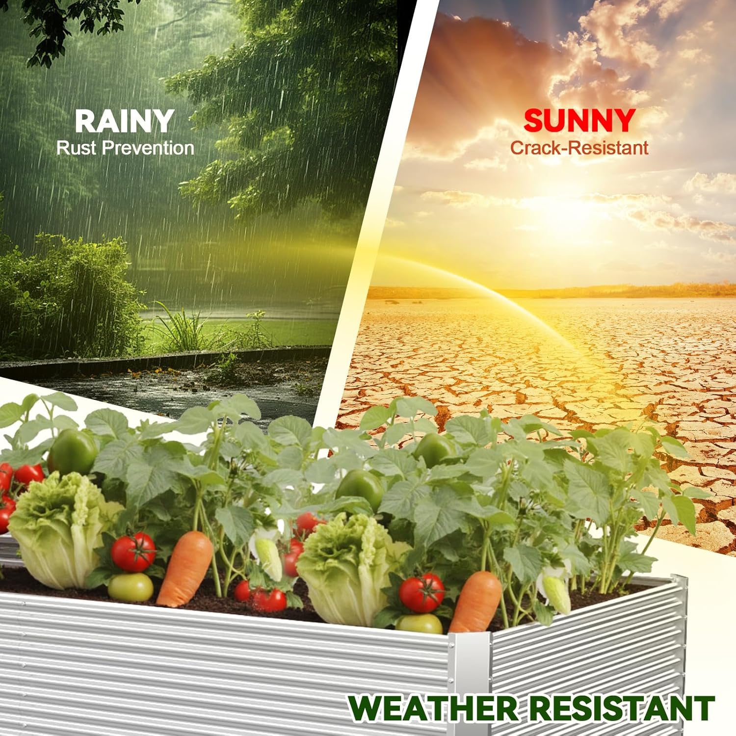 - 【Durable Galvanized Steel Construction】 Crafted from high-quality galvanized steel, this metal raised garden bed is designed for long-lasting use. The anti-corrosion coating ensures durability, while the sturdy frame withstands heavy soil and outdoor weather. Unlike traditional wooden beds, it won’t warp, rot, or crack over time.