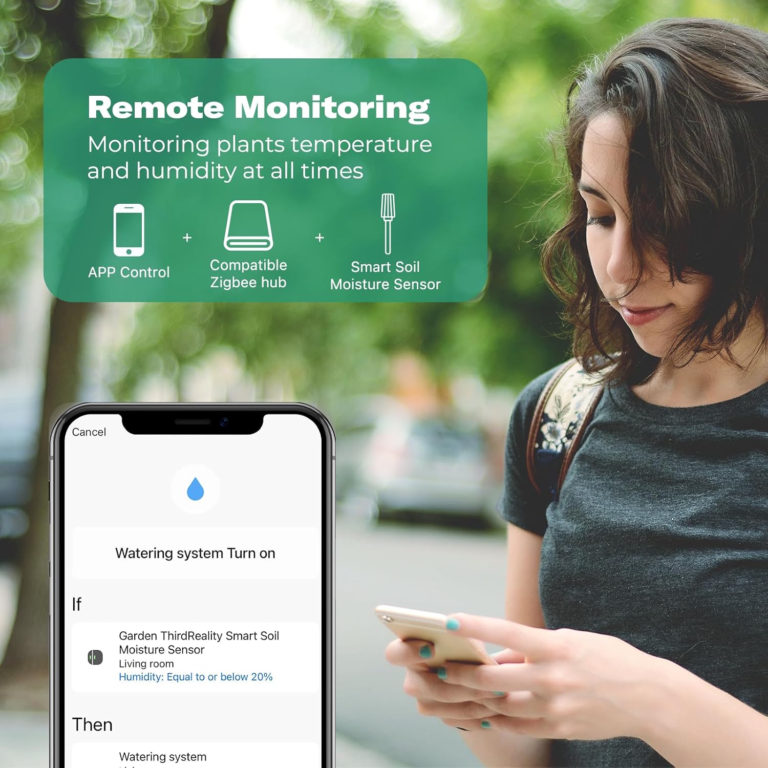 - Remote Monitoring and Automation: Receive real-time alerts on your smartphone, allowing you to take action anytime, anywhere, ensuring your plants get the right care. Integrated with smart home systems, these sensors enable automated watering schedules, so you can manage and control your garden's irrigation remotely, saving both time and effort.