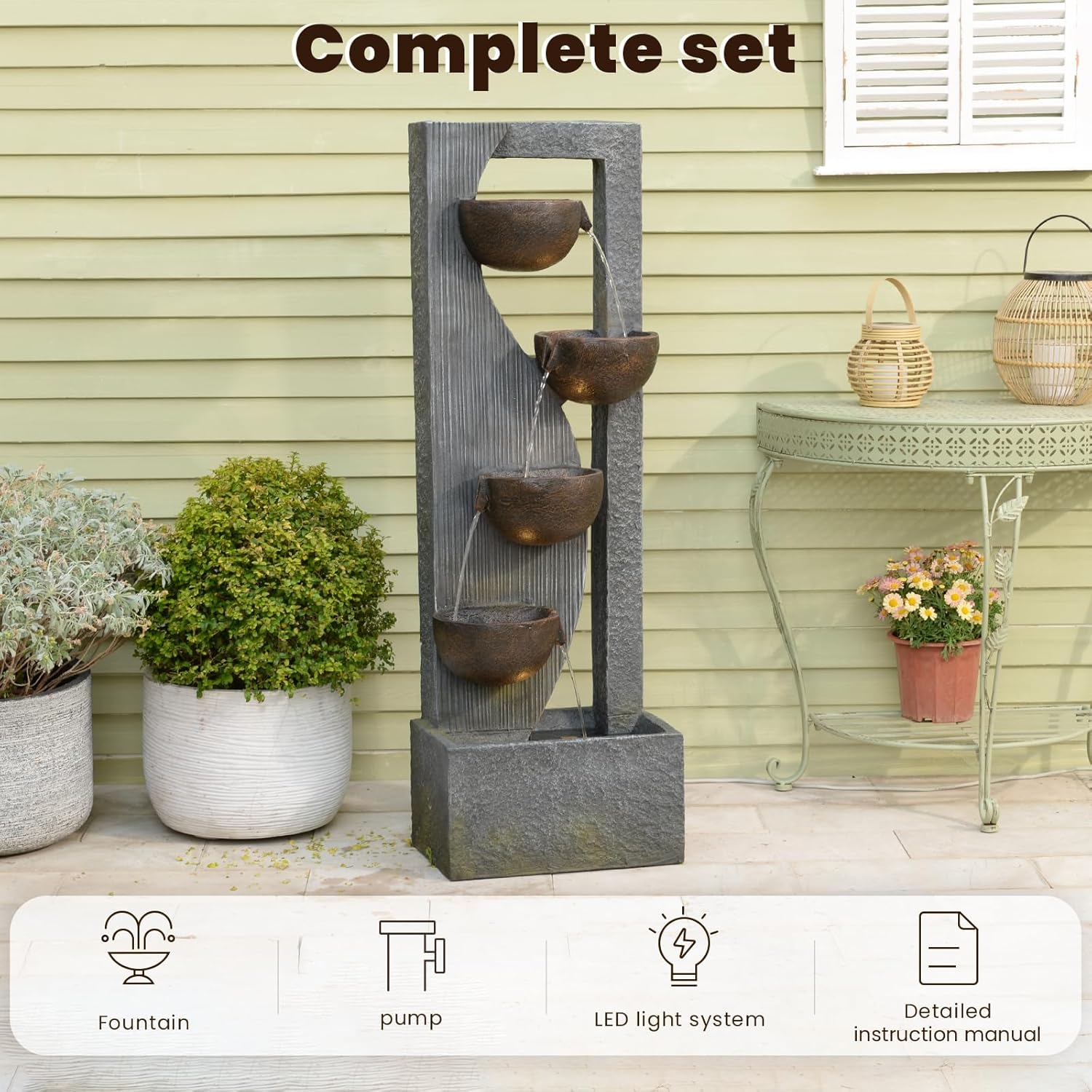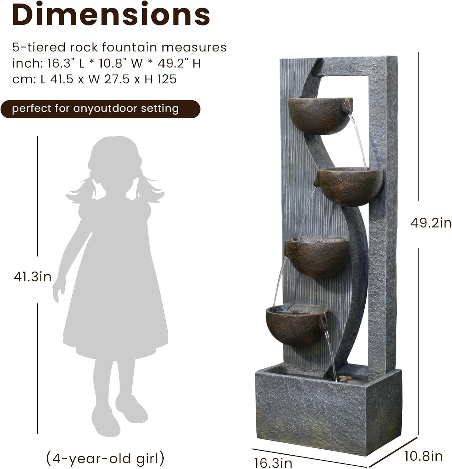 - ๐ 5-Tier Cascading Waterfall Design: Experience serene ambiance with this outdoor waterfall fountain featuring five gently cascading tiers, mimicking natural stone textures for an elegant garden fountain centerpiece.