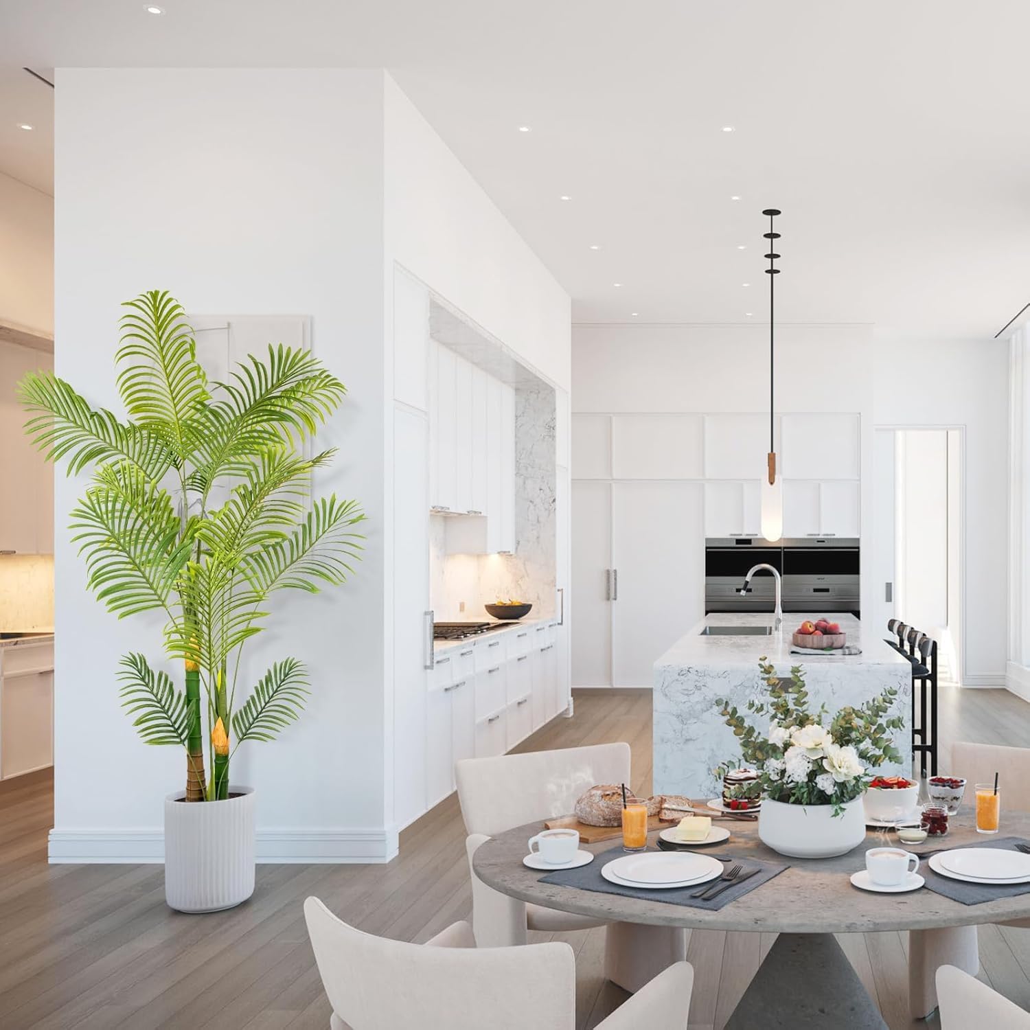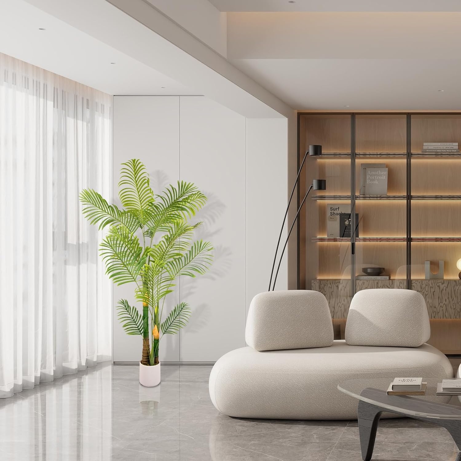 - 🌴 Luxury Artificial Palm Tree with Planter & Free Moss – Elevate your home decor instantly! MCTYBB’s artificial palm tree arrives pre-potted in a sleek white planter, comes with free faux moss—no extra purchases needed. Perfect for patio decor, poolside lounging, or adding tropical vibes to room decor in living rooms, offices, or bedrooms.