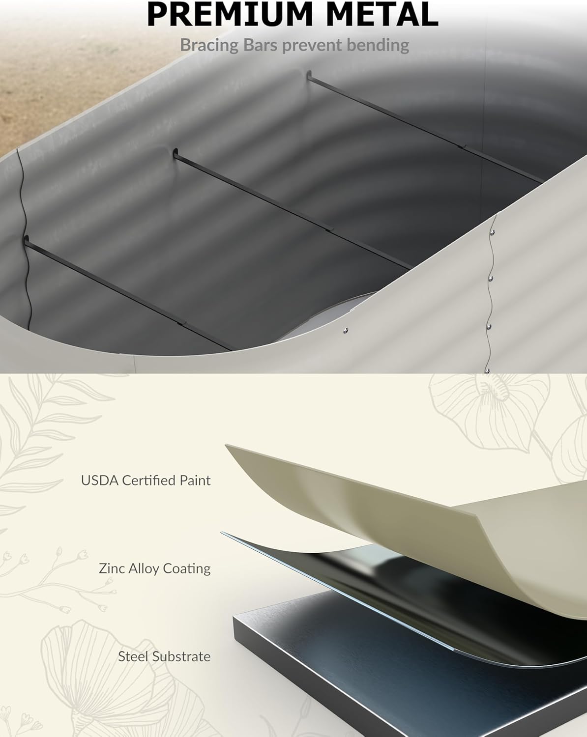 - 【Quick-Assembly Raised Beds Outdoor】This galvanized raised garden bed kit includes all tools for easy setup. The smooth surfaces make maintenance simple, ideal for growing vegetables, flowers or herbs in your outdoor garden box.