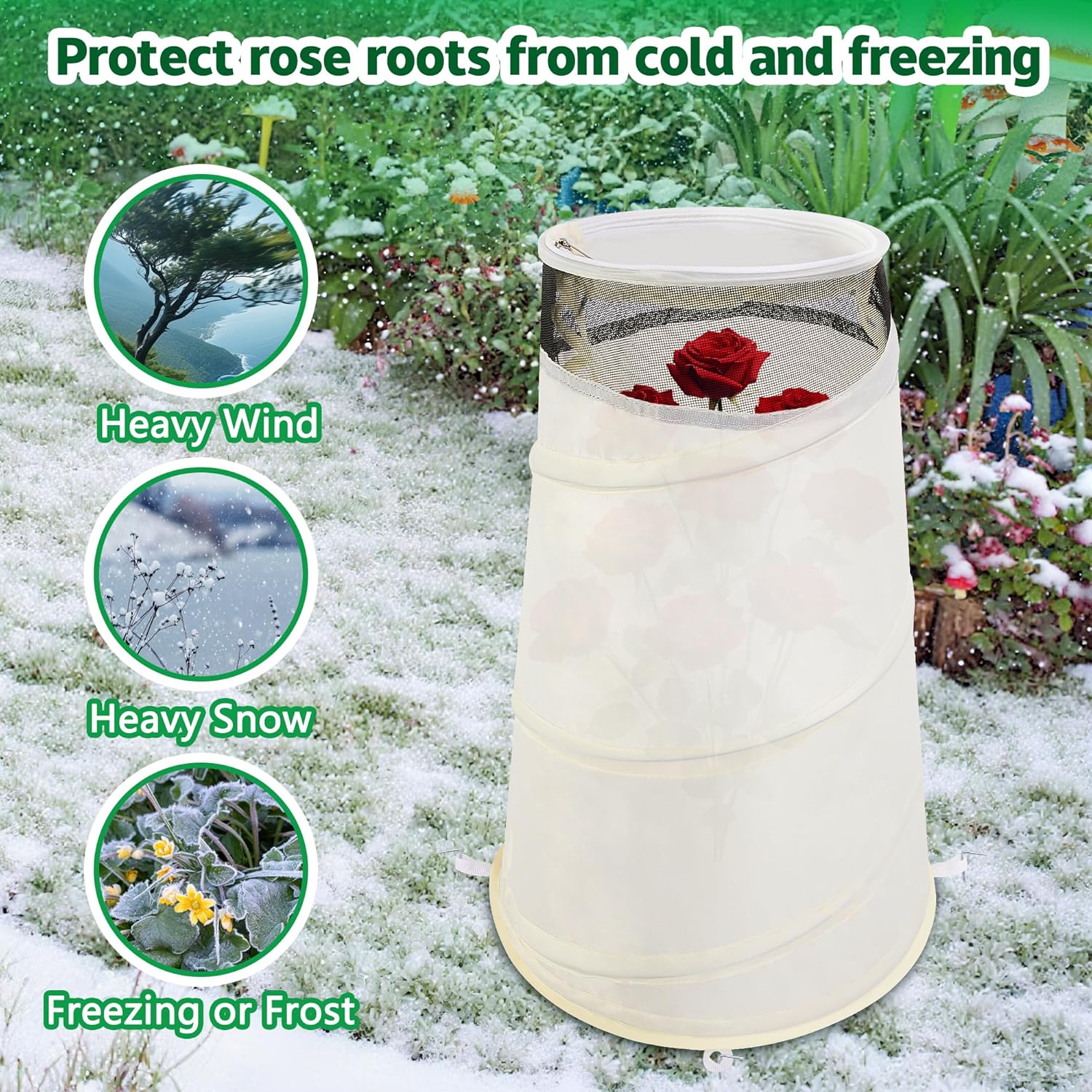 - Package Includes: You will receive 2 pcs pop-up winter rose rrotective covers, with a bottom diameter of 13 inch, a top diameter of 9 inch, and a height of 20 inch, and 8 ground stakes. Prevent rose branches from freezing in winter, keep the roots alive, and still be able to grow and flower the next year.