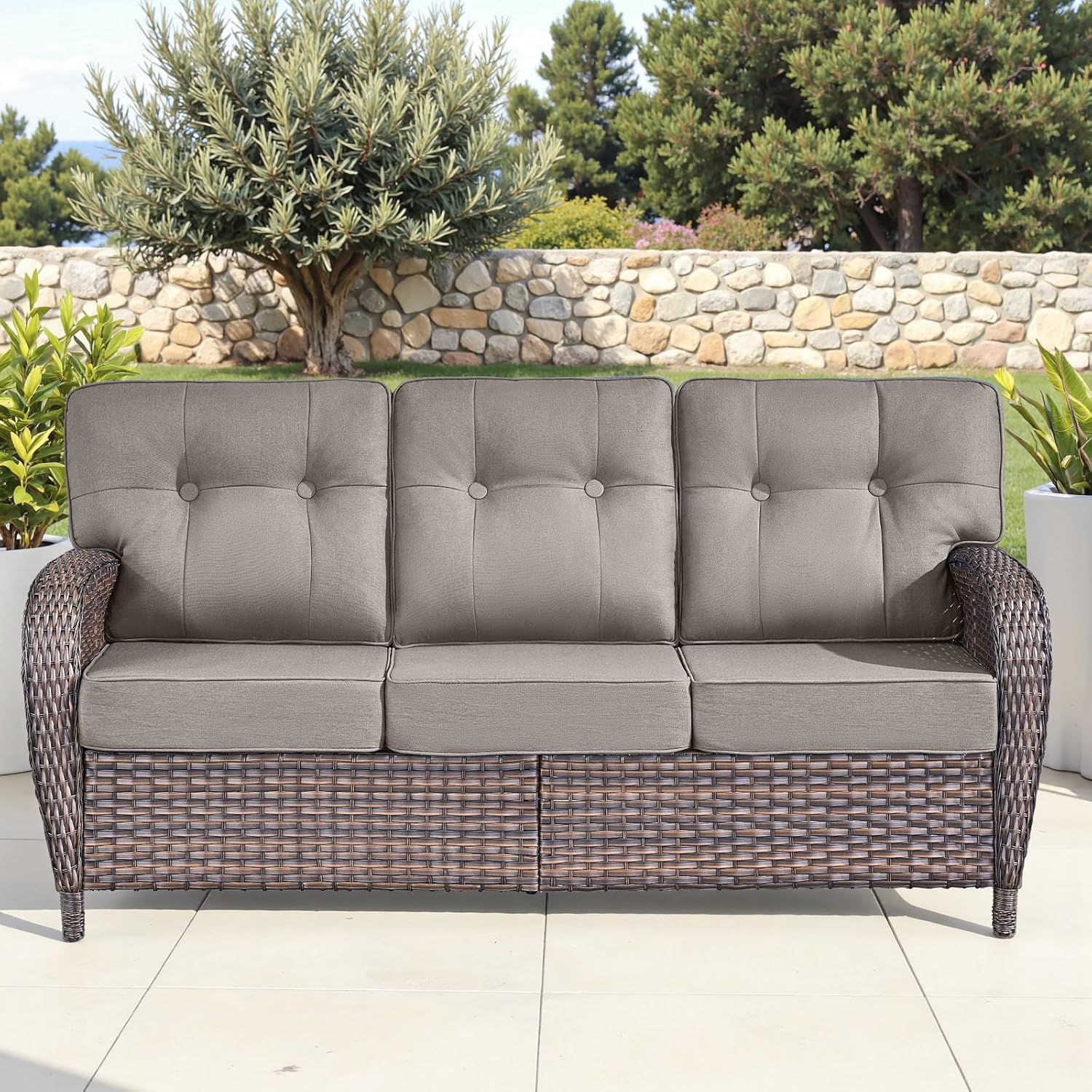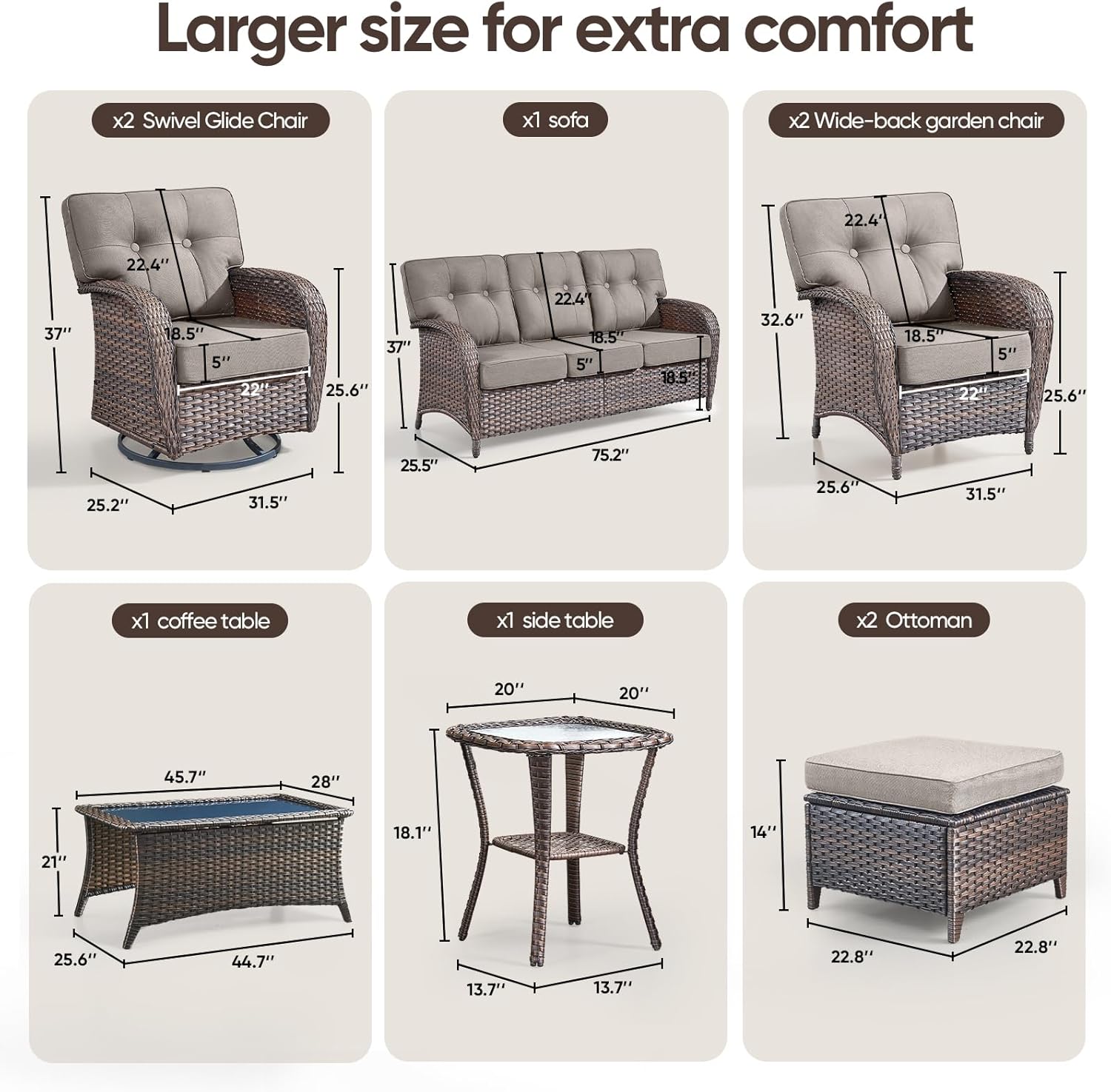 - Color : Brown Rattan | Grey Cushions