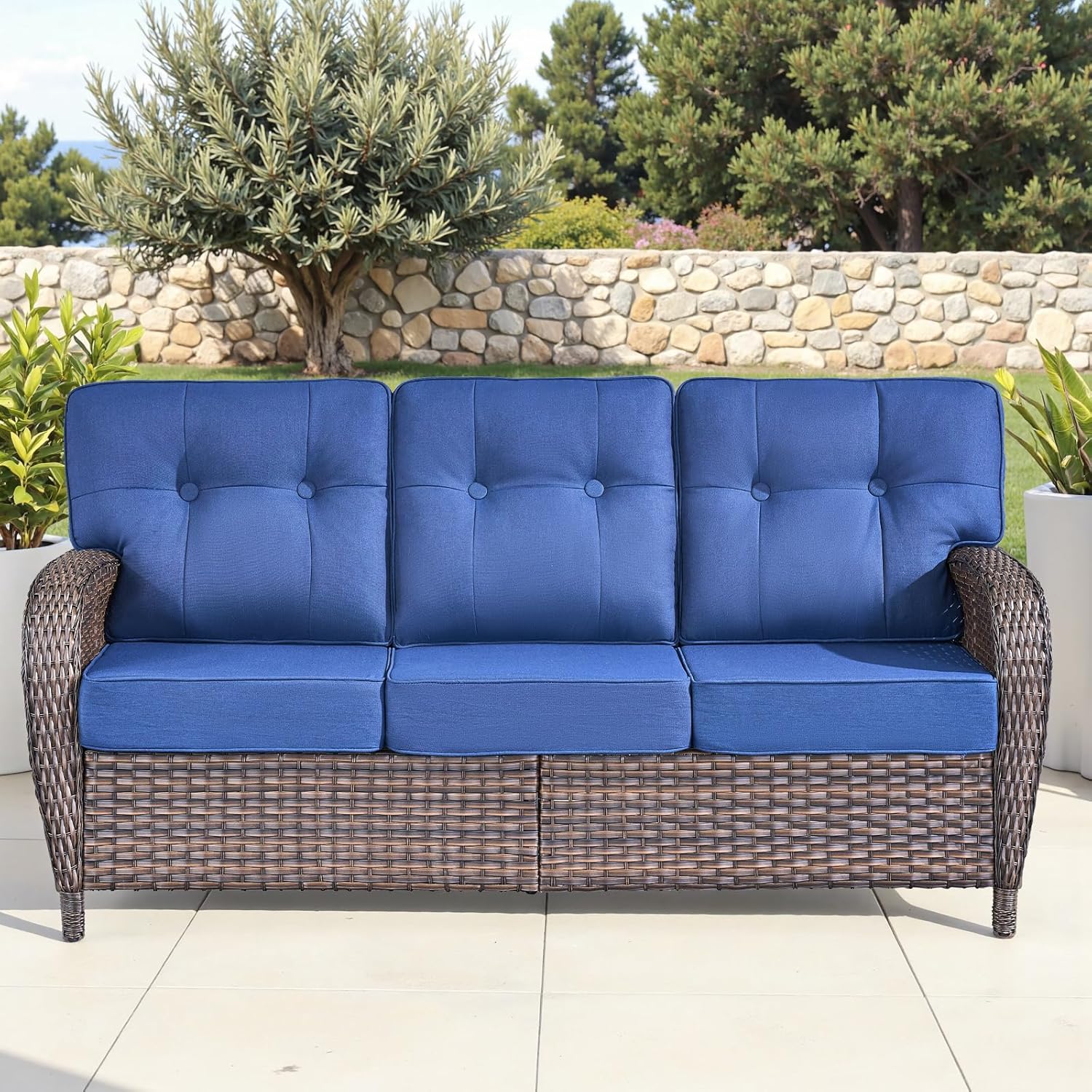 - 【Luxury T-shaped Wide Cushion】: This wicker rocking chair features a 31-inch-wide backrest. The 5-inch cushion on the outdoor rocking chair swivel chair is made of high-density 28D foam, perfectly balancing softness and support. Its quick-rebound properties ensure long-term shape retention and comfort. The backrest is filled with three-dimensional spaced cotton. The cushion cover is made of premium OLEFIN fabric, offering UV resistance, waterproofing, and fade resistance. Compared to ordinary polyester fabric, it is more comfortable and durable