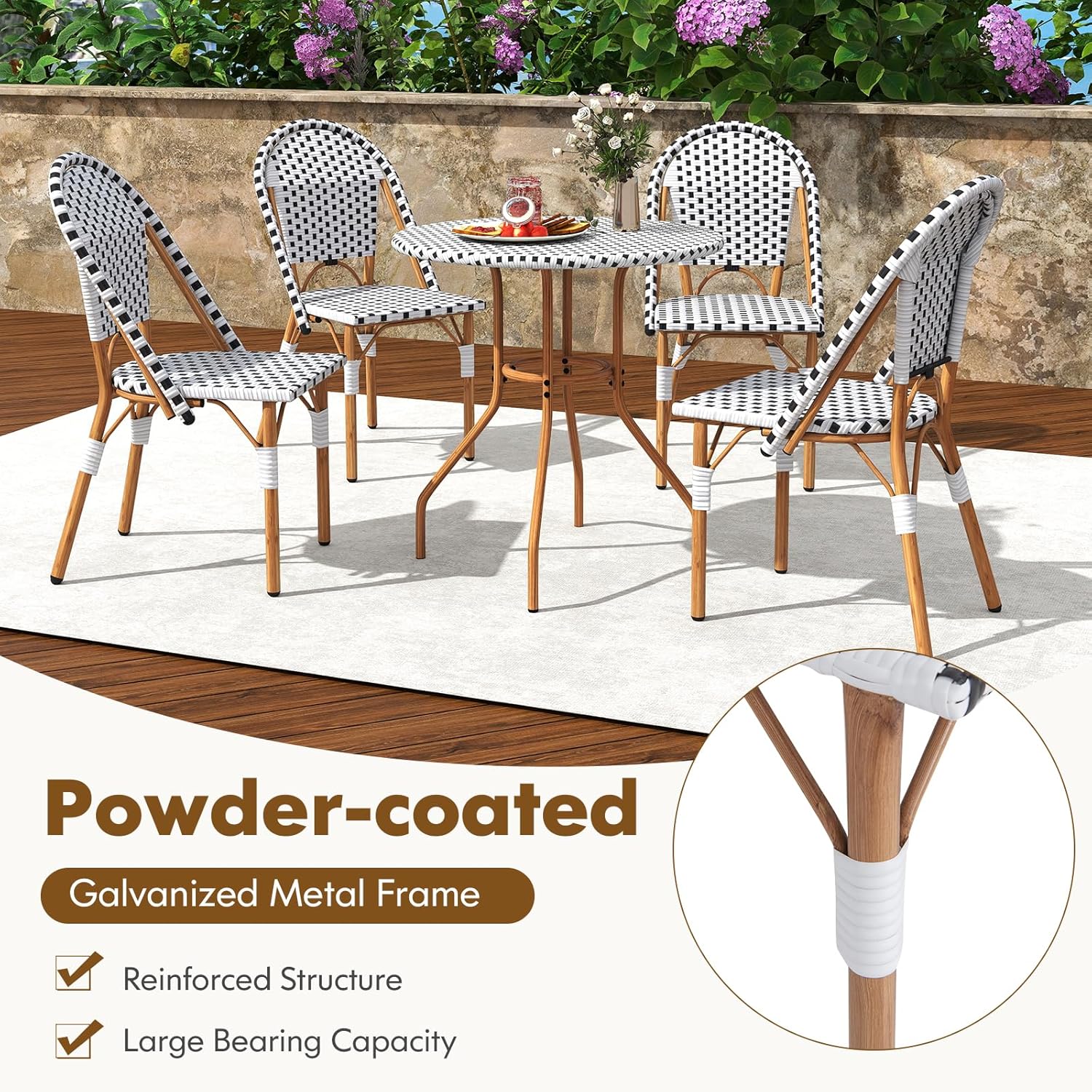 Tangkula 3 Piece French Bistro Table Chair Set, Outdoor Wicker Round Table & 2 Dining Chairs with Metal Support, Outside Accent Dining Furniture Set for Garden, Balcony, Porch