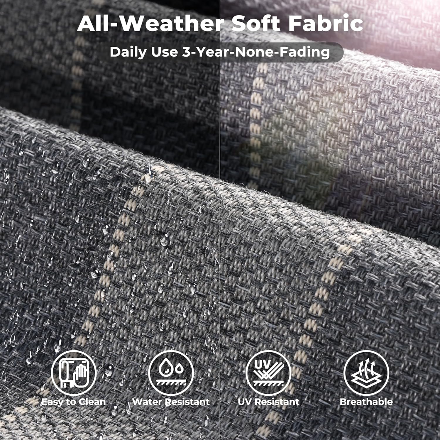 - All-weather Wicker Rattan: Our outdoor sofa sets have very durable wicker rattan for all-weather use and a natural texture with good coloring. The high-quality patio seating made of powder coated steel frame ensures good strength and stability.