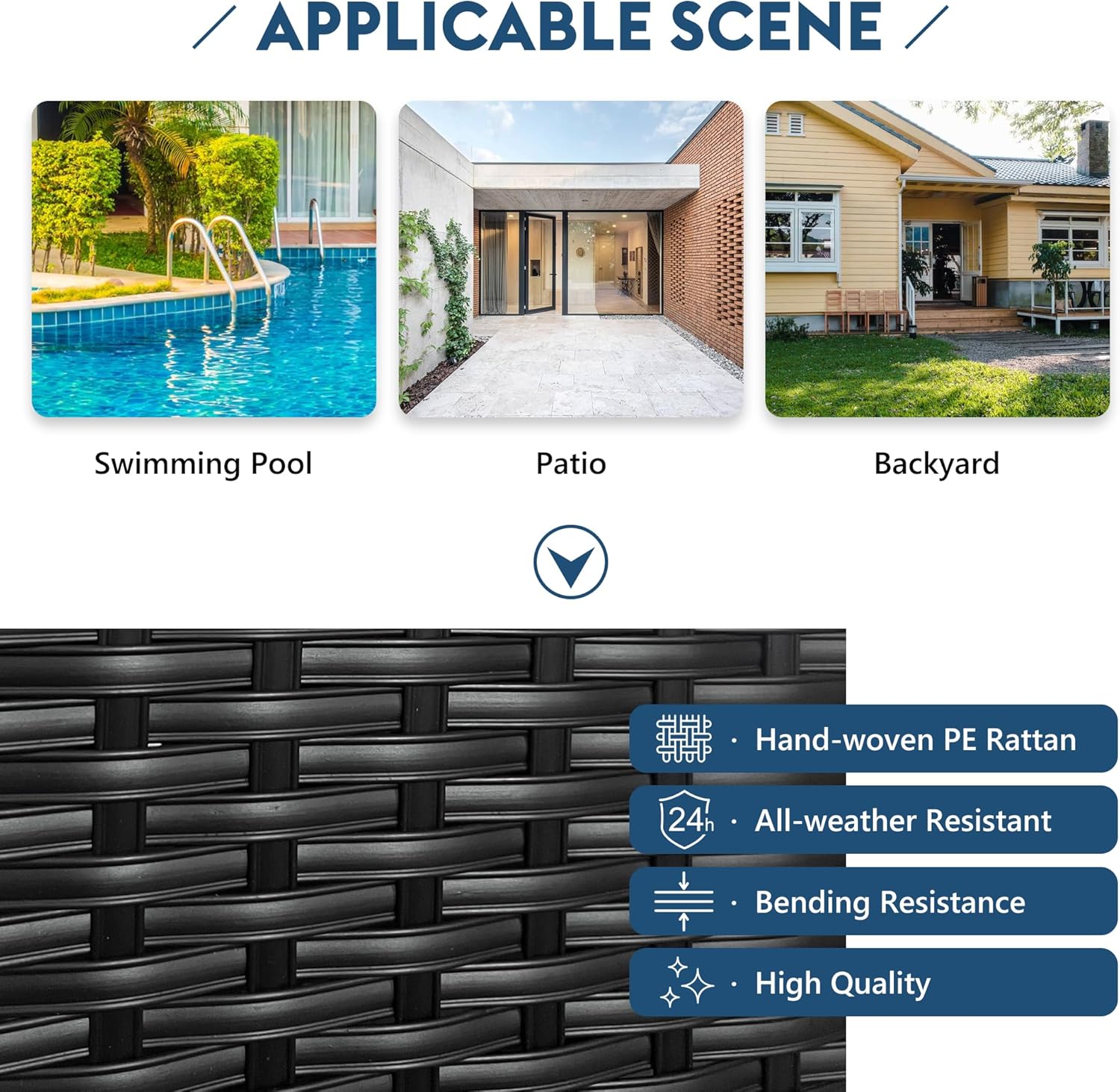 - Outdoor Daybed with Cozy Cushions:The wicker double chaise lounge comes with two full-length seat cushions, offering ample space for two people. Each cushion is filled with elastic sponge, ensuring a plush, inviting seating experience.Note: For prolonged use, avoid rain exposure to preserve the cushions
