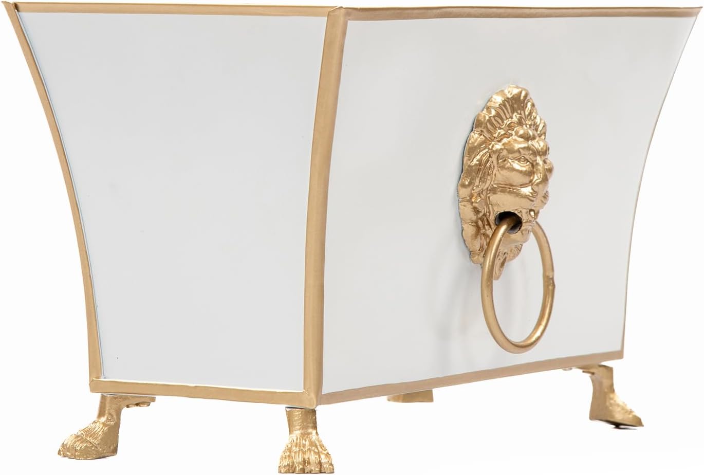 - Gracie Collection Signature Design | Featuring fluted edges and graceful feet, this cachepot from the Gracie collection offers unmatched sophistication in decorative boxes. Whether used on a console, windowsill, or dining table, this gold trim metal planter delivers style with purpose.