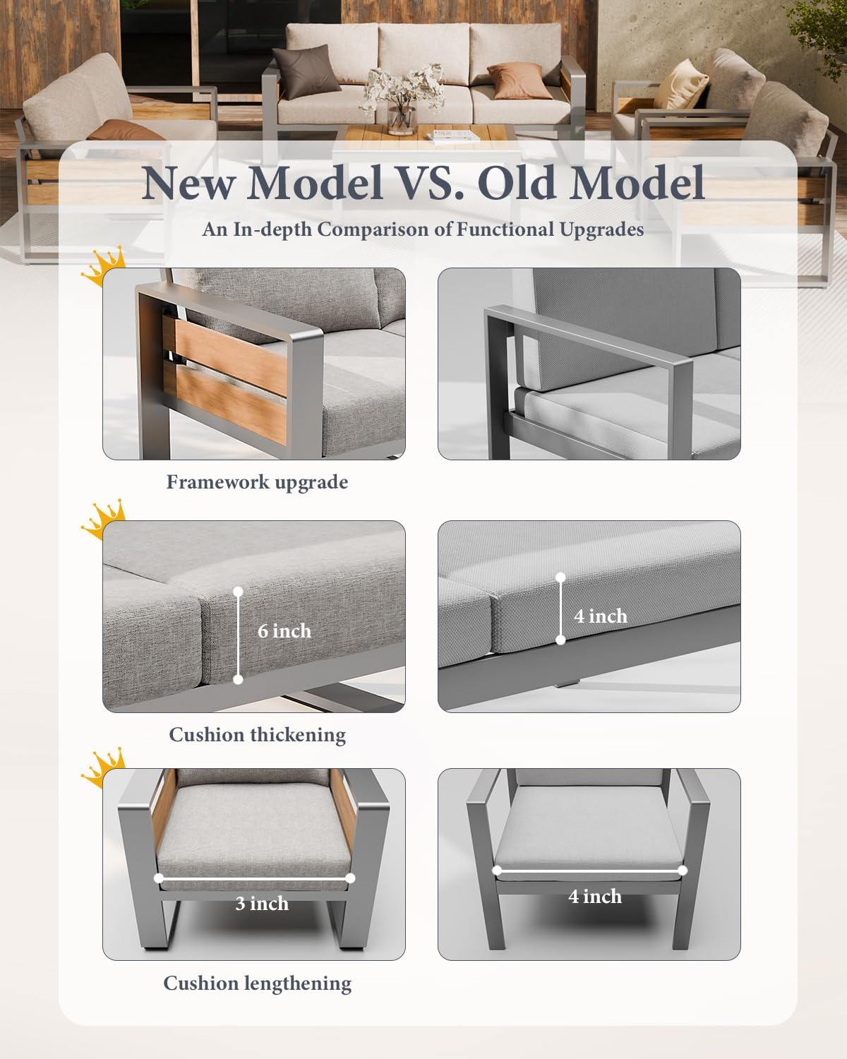 - 【5.5" Removable & Machine-washable Seat Cushion】 This outdoor furniture's cushion covers are removable and machine-washable, making cleaning effortless and keeping your set looking like new. Seat cushion of the set comes with high-density sponge, better for upper-body support, cushions are designed to be stable, keeping them from sliding around.