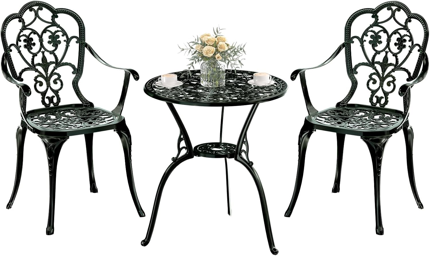 - ăDurable Cast AluminumăMade of anti-rust, weather-resistant cast aluminum, making bistro set perfect for long-term outdoor use in any climate