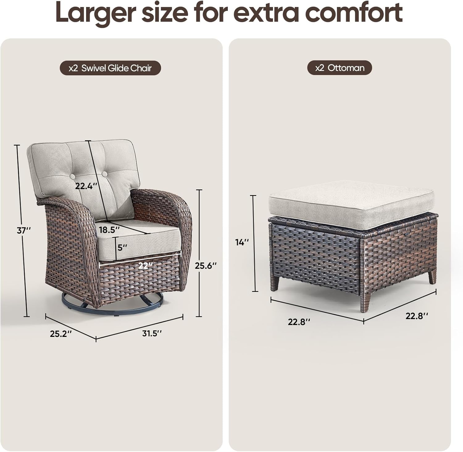 - 【Balcony Furniture Set Includes】: This 4-piece balcony furniture set includes 2 swivel chairs and 2 footstools. The footstools can be used to relax your legs, or as small tables or stools. The swivel chairs can support up to 350 pounds.
