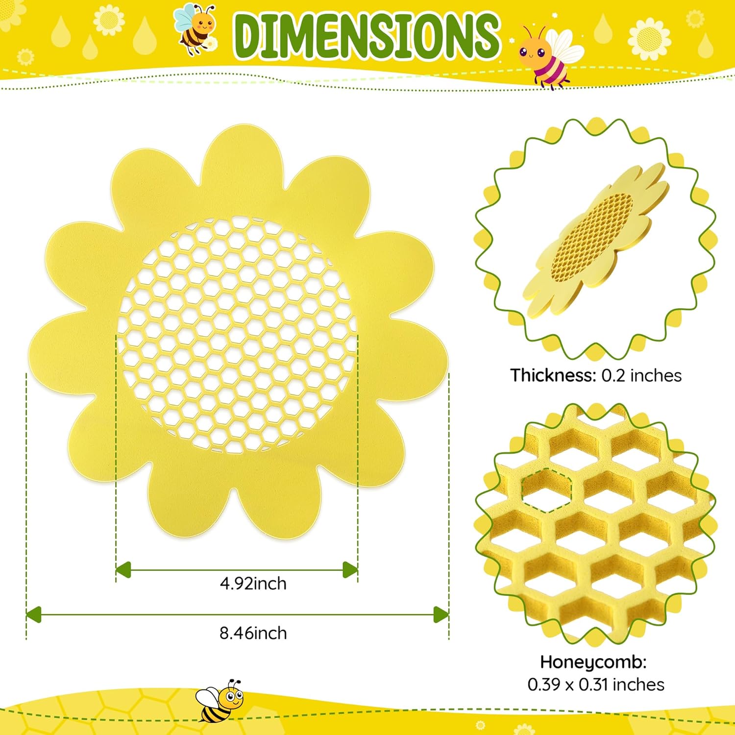 - Sunflower Beehive Design Attracts Bees: The bee watering station for garden features a unique bright yellow sunflower design combined with a natural honeycomb structure. The small honeycomb holes are tailored to the bee's body, providing a non-slip landing surface and effectively preventing drowning. It also attracts pollinators such as bees and butterflies to drink and rest