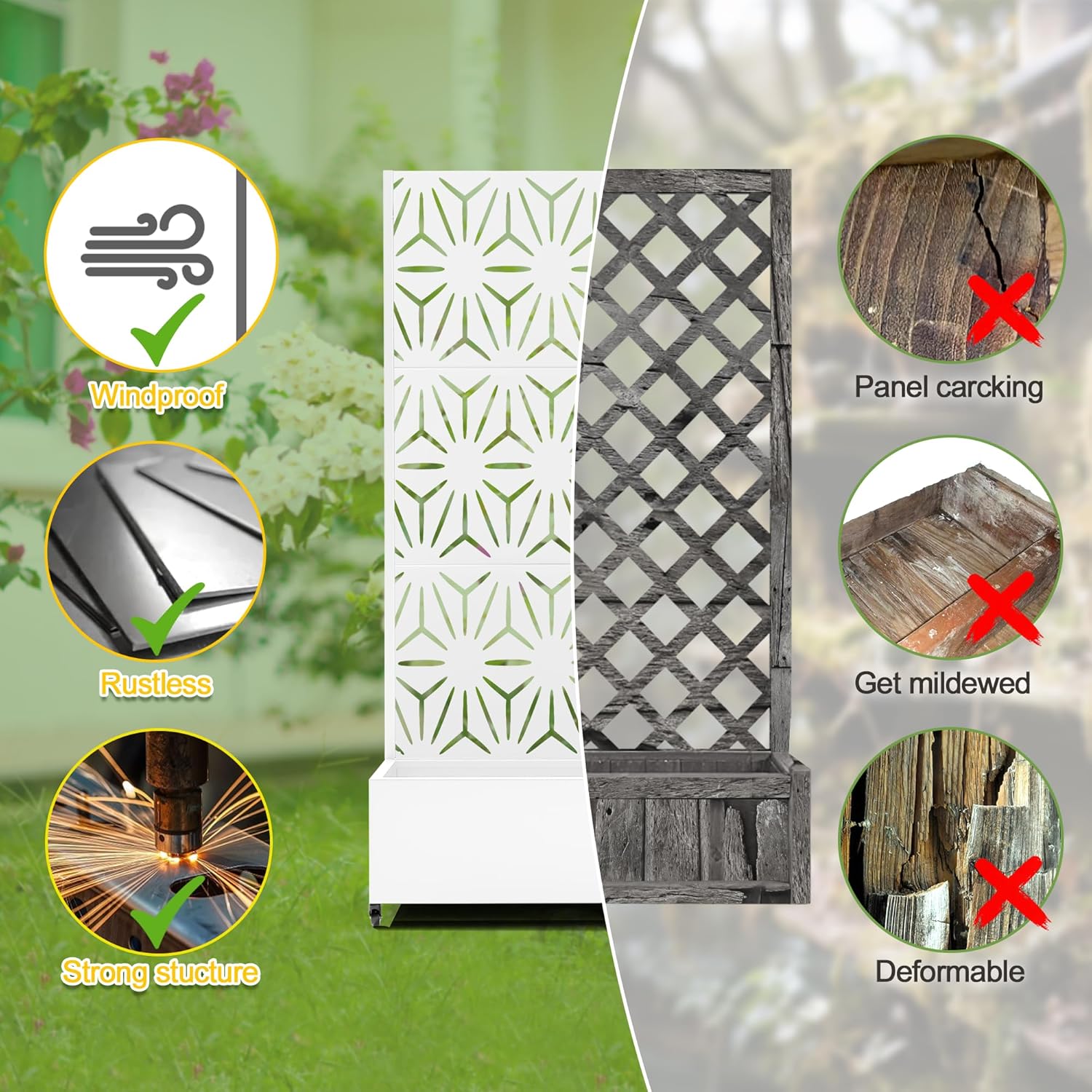 • 【Space-Saving Design】The combination of the planter box and trellis saves space while offering an attractive garden bed. This space-efficient solution is ideal for gardening enthusiasts facing space constraints, allowing them to cultivate beautiful gardens even in limited areas.