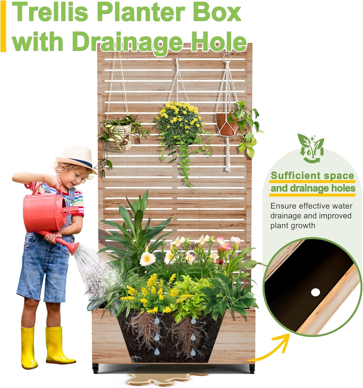 • 【Planter Box with Drainage Hole】Designed with a 12” deep planting bed and equipped with drainage holes at the bottom, this planter box provides ample space for healthy plant growth, ensuring excess water can escape and preventing waterlogging.