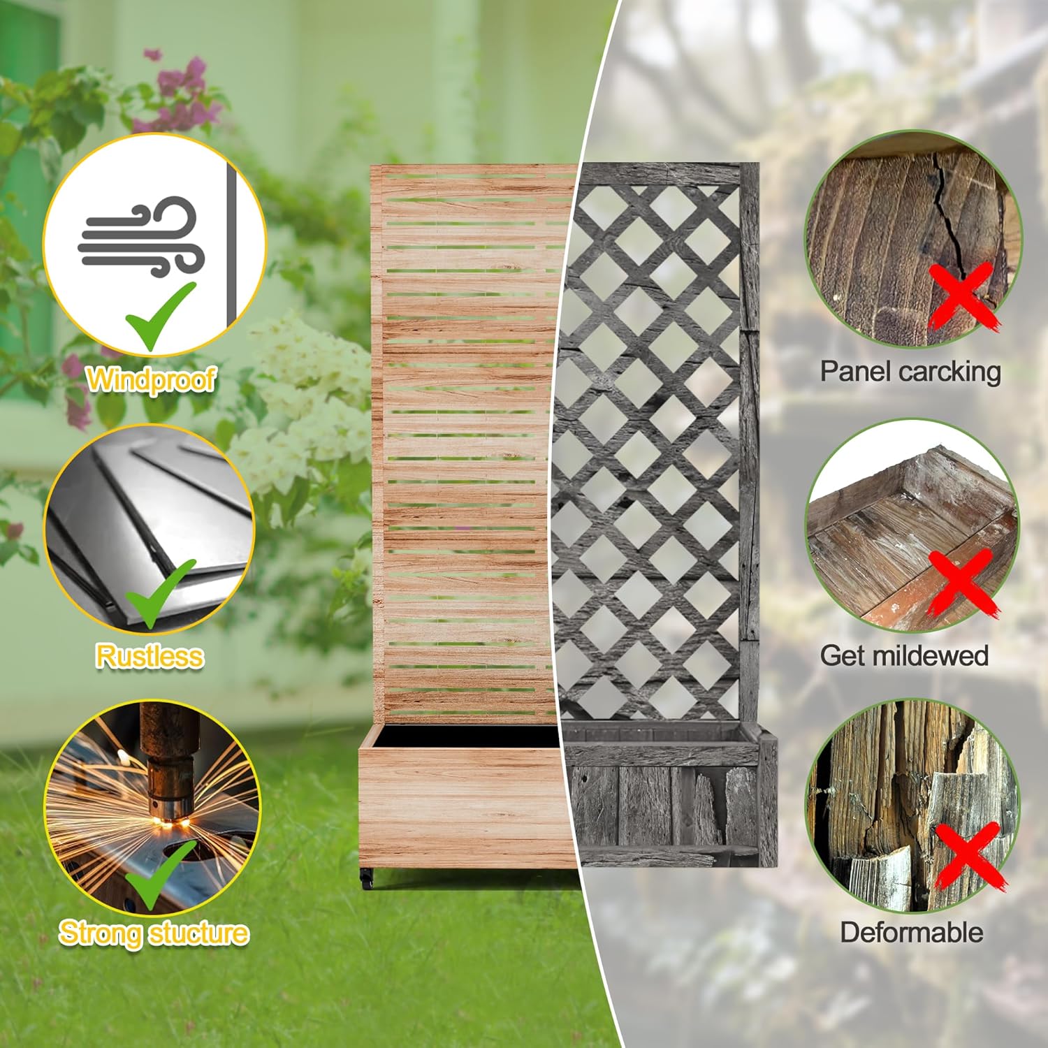 • 【Space-Saving Design】The combination of the planter box and trellis saves space while offering an attractive garden bed. This space-efficient solution is ideal for gardening enthusiasts facing space constraints, allowing them to cultivate beautiful gardens even in limited areas.