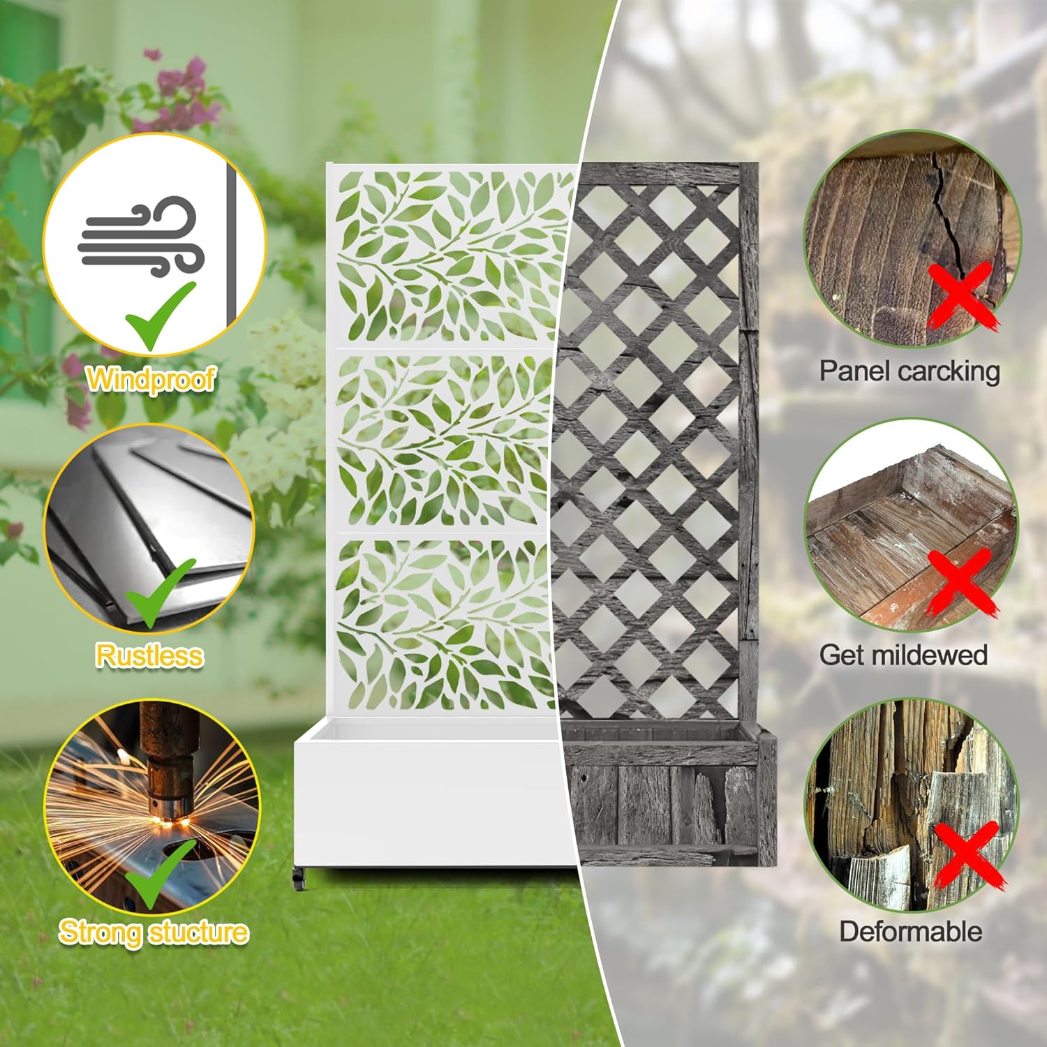 - 【Space-Saving Design】The combination of the planter box and trellis saves space while offering an attractive garden bed. This space-efficient solution is ideal for gardening enthusiasts facing space constraints, allowing them to cultivate beautiful gardens even in limited areas.