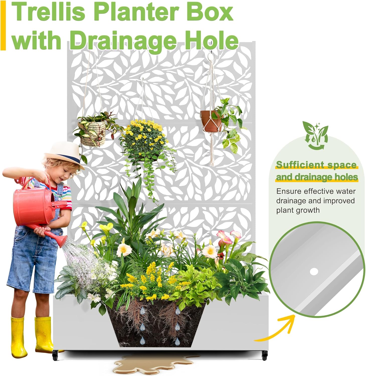 - 【Planter Box with Drainage Hole】Designed with a 12” deep planting bed and equipped with drainage holes at the bottom, this planter box provides ample space for healthy plant growth, ensuring excess water can escape and preventing waterlogging.