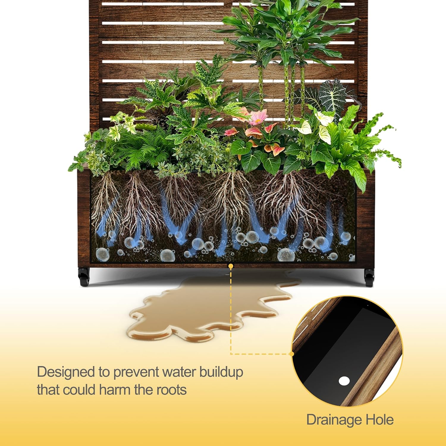 - Built-in Drainage System This planter box features a 12-inch deep planting bed equipped with drainage holes to effectively prevent water accumulation, ensuring plants receive the proper moisture for healthy growth. This design helps maintain optimal soil moisture levels and avoids issues caused by overwatering.