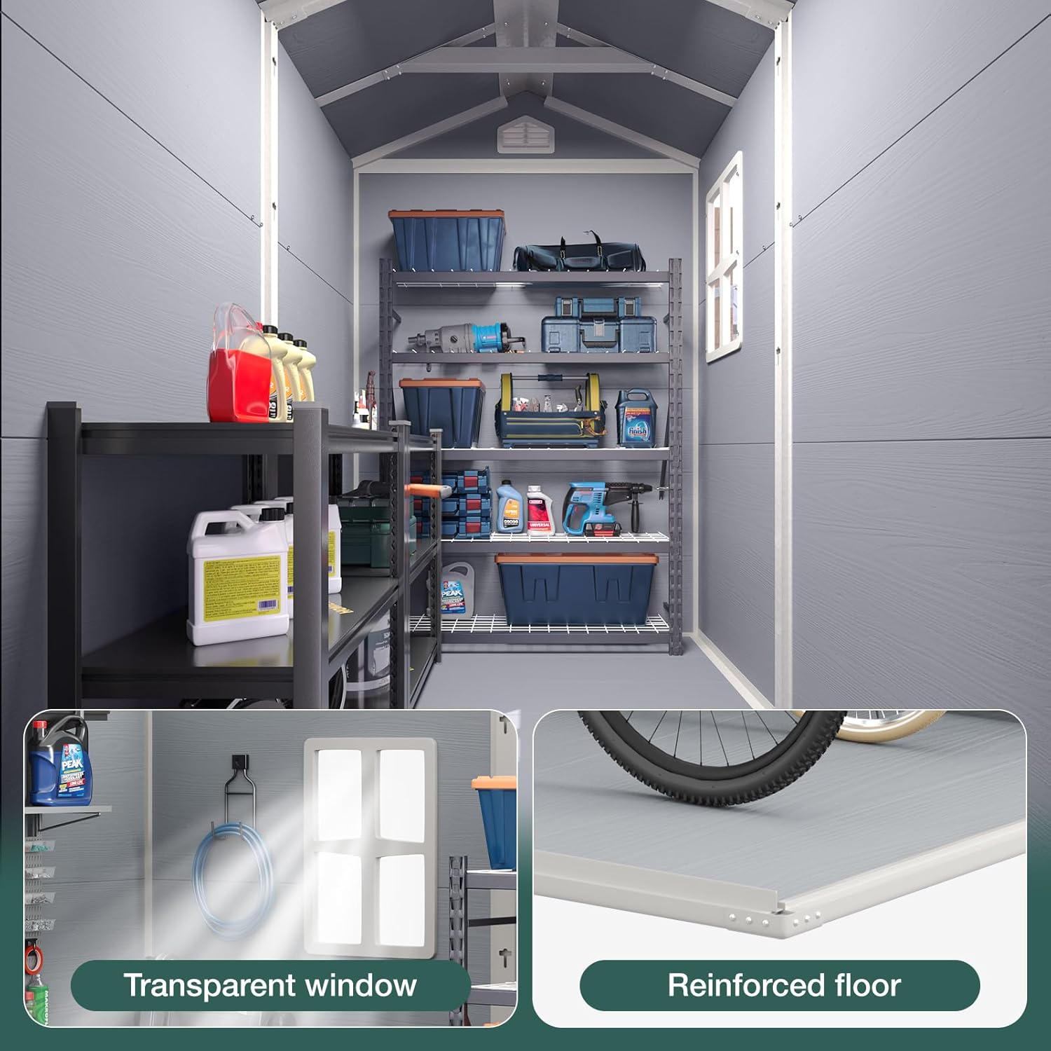 - All-weather Use: Made from premium UV-protected resin, this storage shed is built to withstand extreme weather conditions all year round—no fading, cracking, or warping over time.