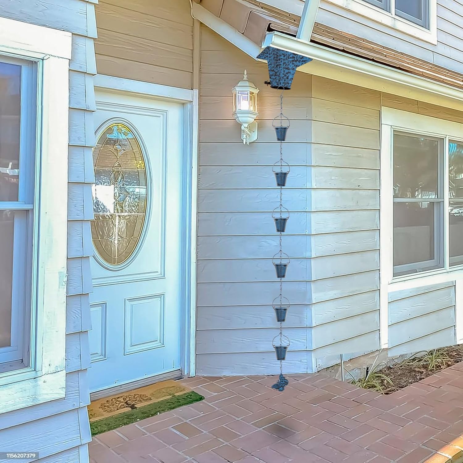 - Excellent Iron Spray Painting Carft : This rain chain set is made of high-quality iron, which is carefully polished and sanded through multiple processes, and then covered with high-quality rust-proof spray paint. This process not only enhances the aesthetics of the product, but also greatly enhances its weather resistance and corrosion resistance, ensuring that it stays bright and new for a long time and extends its service life even in humid .