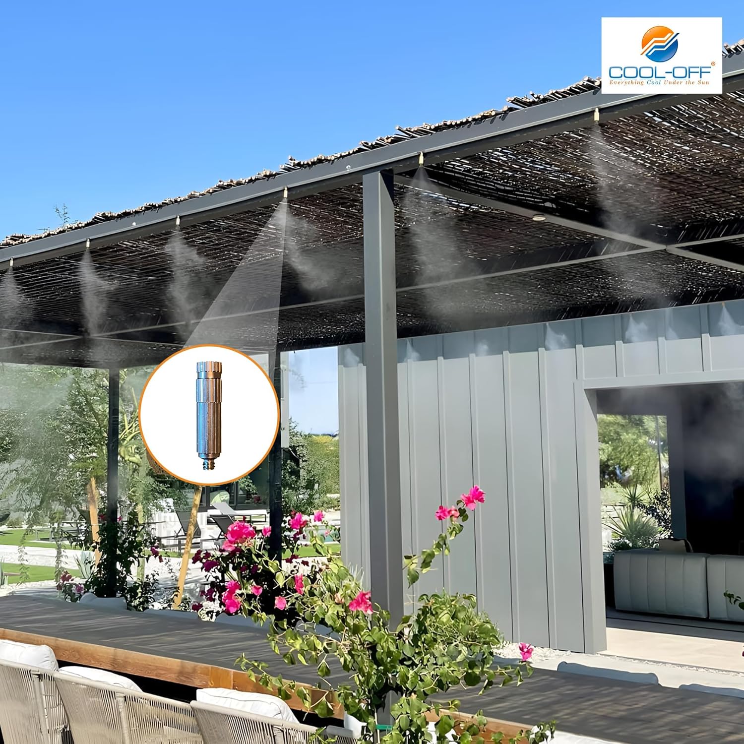 - Versatile Colling and Irrigation: You can use our outdoor misters for patio cooling for backyard patio control, keeps guests cool at birthday parties/family gatherings, and increase the comfort while reading, napping, or lounging. It can also be used as a misting system for maintaining humidity and preventing drying out in patio-adjacent garden beds.