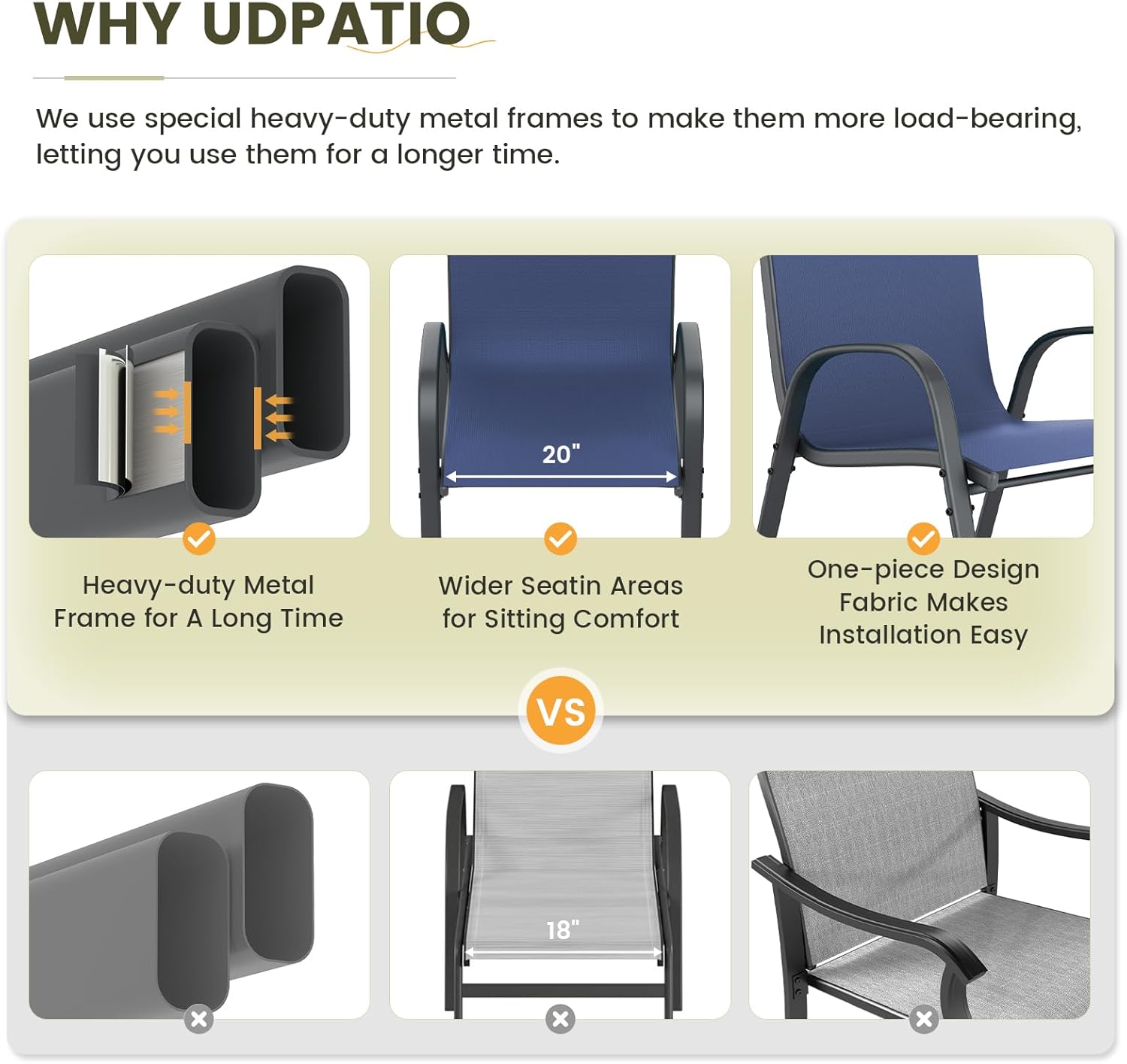 UDPATIO Patio Chairs Set of 2, Stackable Outdoor Dining Chairs with High Back, Breathable Textilene Fabric Outdoor Chair All Weather, 350LBS Capacity for Garden, Backyard (Blue)