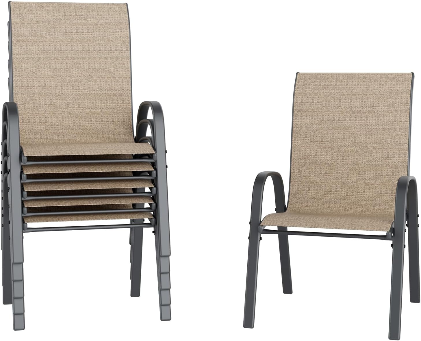 - 【OUTDOOR STACKABLE DINING CHAIRS】The stackable design allows you to both easily stack these patio chairs for compact storage, saving valuable space in your home or outdoor space. Lightweight design allows you to easily move these outdoor chairs and place them wherever you need them to be