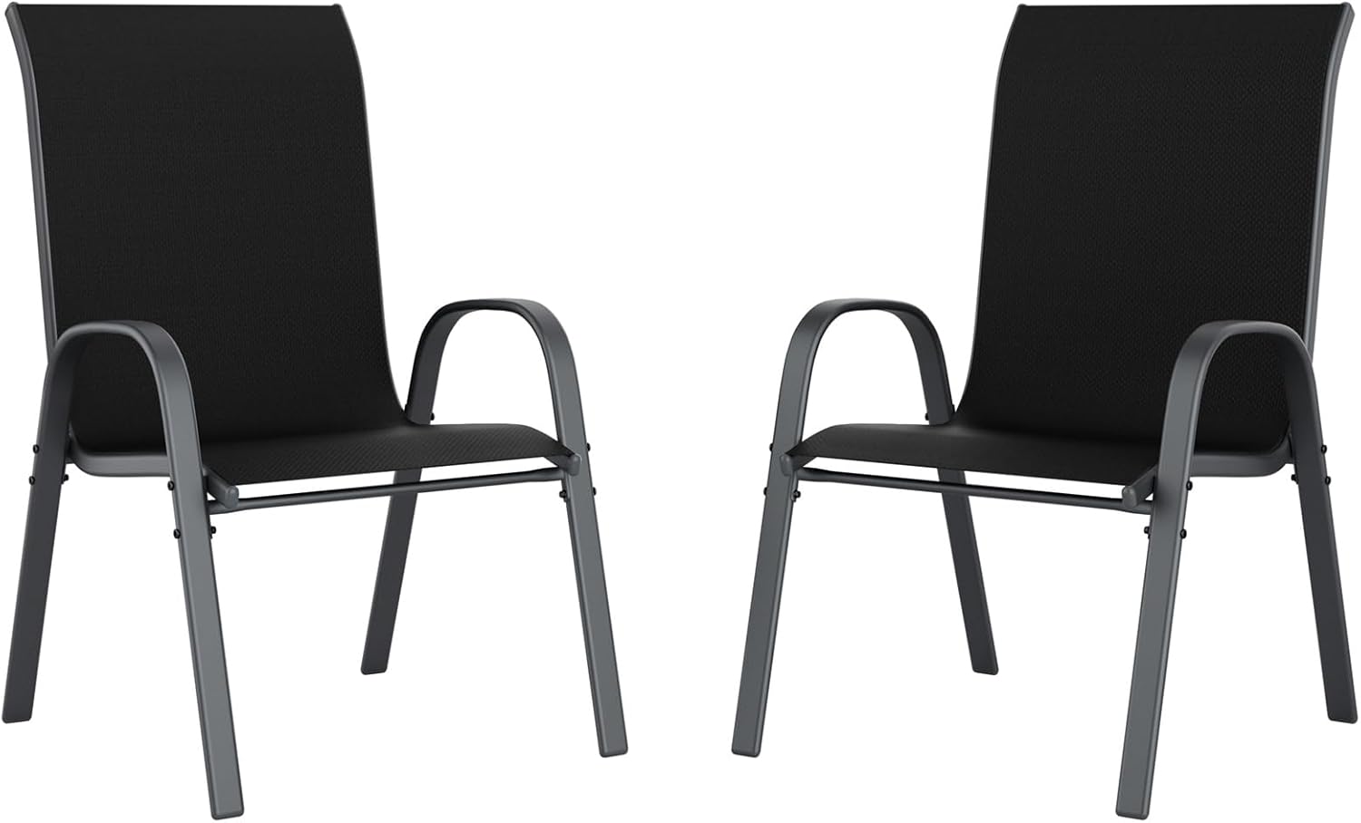UDPATIO Patio Chairs Set of 2, Stackable Outdoor Dining Chairs with High Back, Breathable Textilene Fabric Outdoor Chair All Weather, 350LBS Capacity for Garden, Backyard (Black)