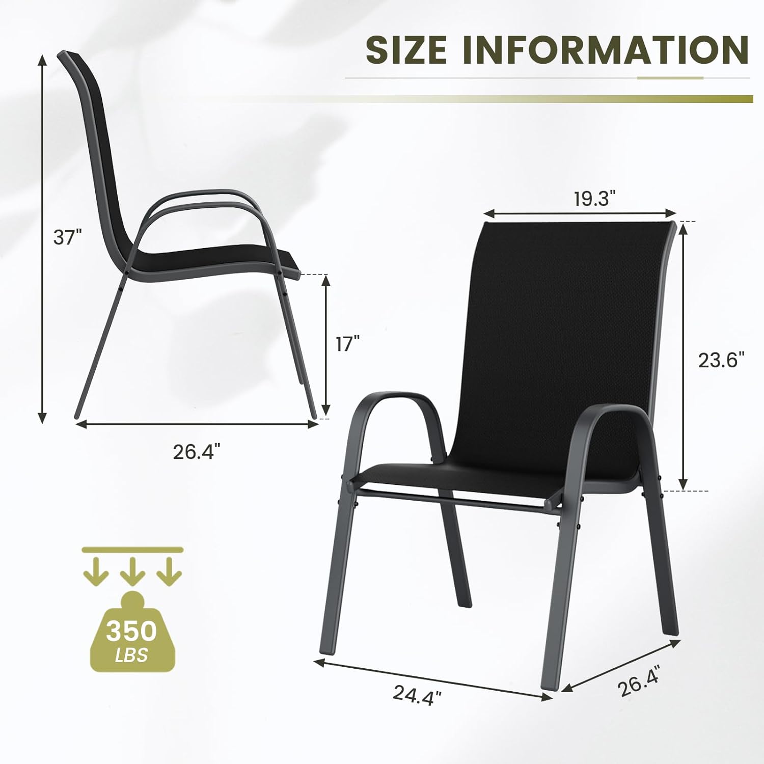 - 【OUTDOOR STACKABLE DINING CHAIRS】The stackable design allows you to both easily stack these patio chairs for compact storage, saving valuable space in your home or outdoor space. Lightweight design allows you to easily move these outdoor chairs and place them wherever you need them to be