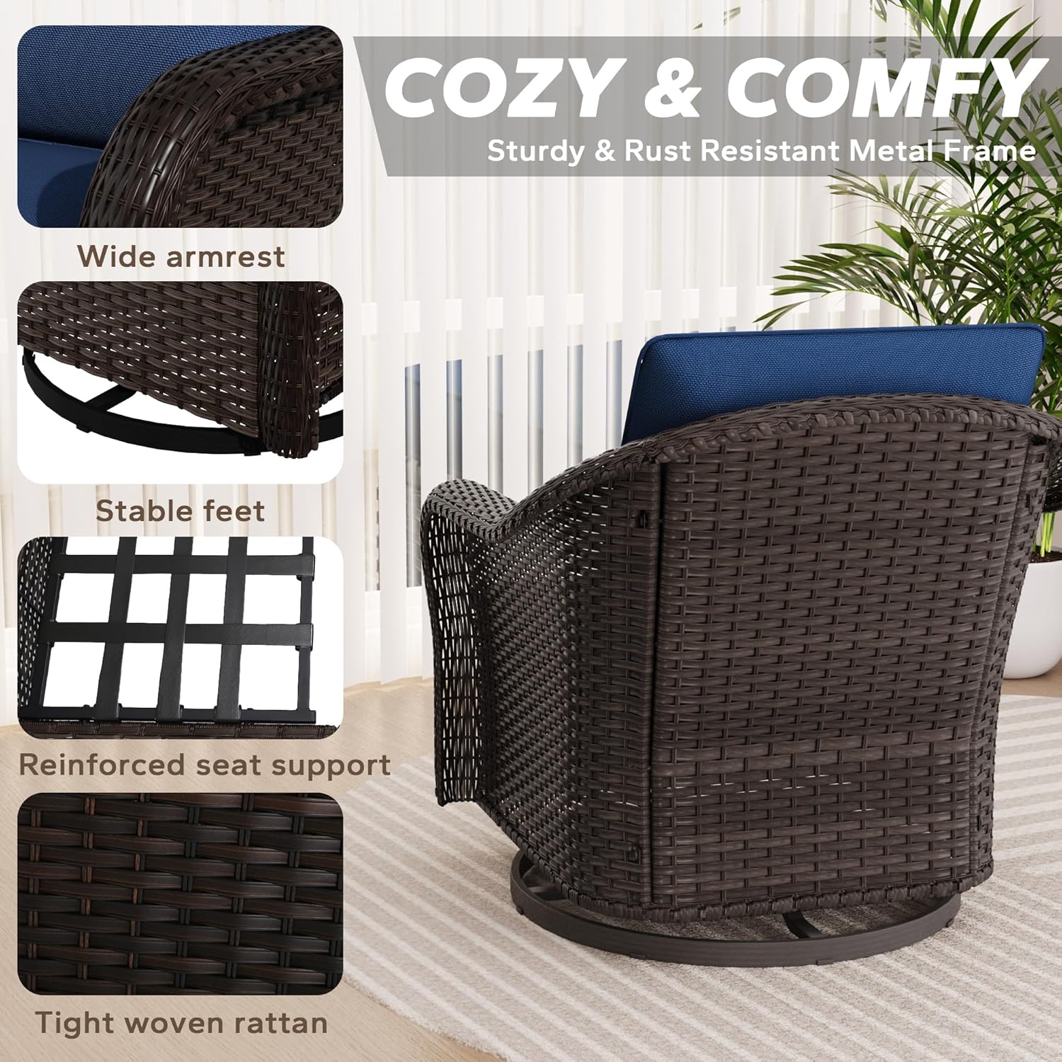 - Sturdy and Durable: The outdoor furniture set is made of steel frame and PE wicker, ensuring that it will be more sturdy. Fade-resistant fabrics of cushions is stain & fade resistance, tear & wear resistance