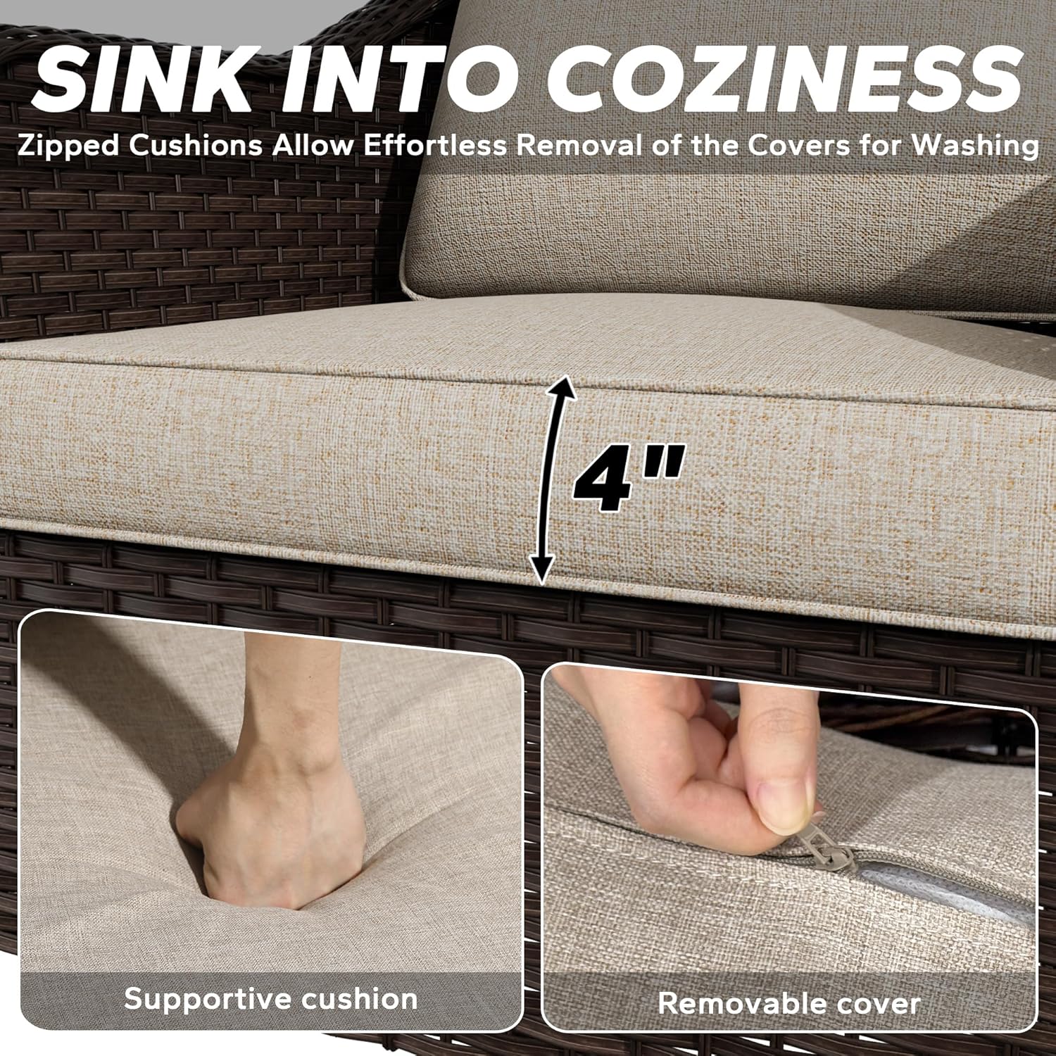 - Sturdy and Durable: The outdoor furniture set is made of steel frame and PE wicker, ensuring that it will be more sturdy. Fade-resistant fabrics of cushions is stain & fade resistance, tear & wear resistance