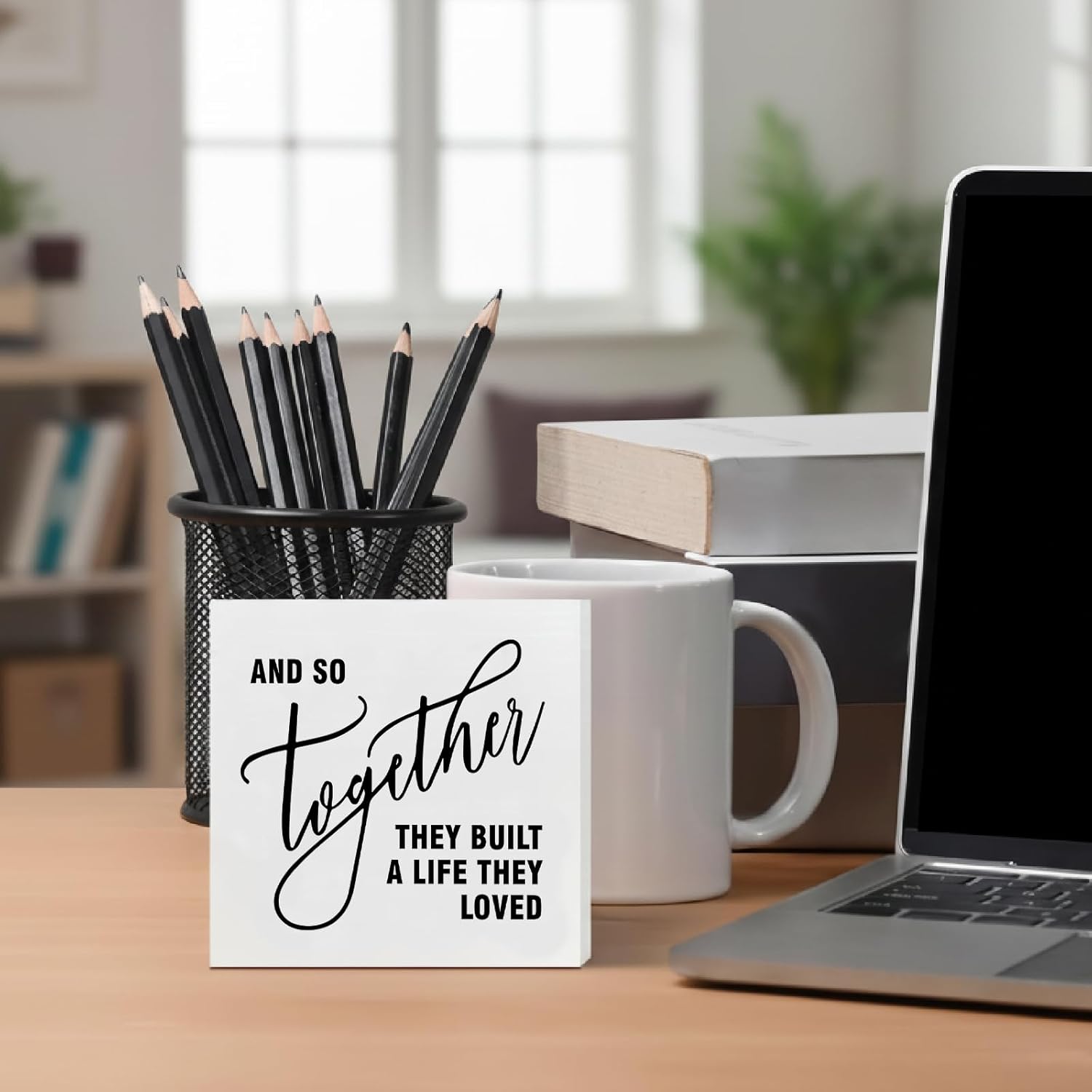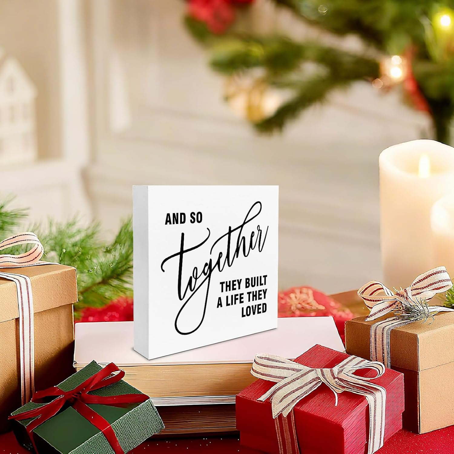 Family Decor, Together They Built A Life Rustic Farmhouse Wooden Box Sign, Family Home Decorations for Living Room Bedroom Desk Table Shelf