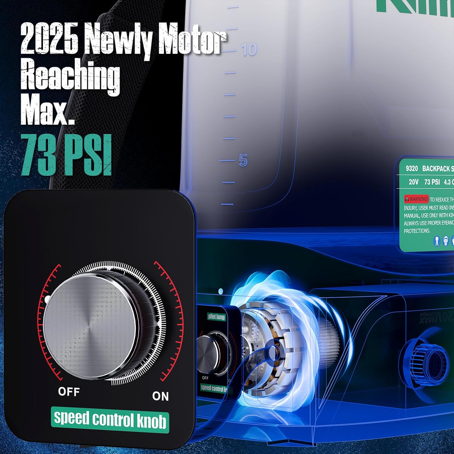 - 【0-73 PSI Adjustable Pressure】Powered by a high-pressure pump delivering up to 73 PSI, this battery powered sprayer generates a powerful, consistent mist that reaches even the toughest spots—like the tops of tall plants or the undersides of leaves. Built for durability and reliability, the pump ensures steady performance, even during long spraying sessions