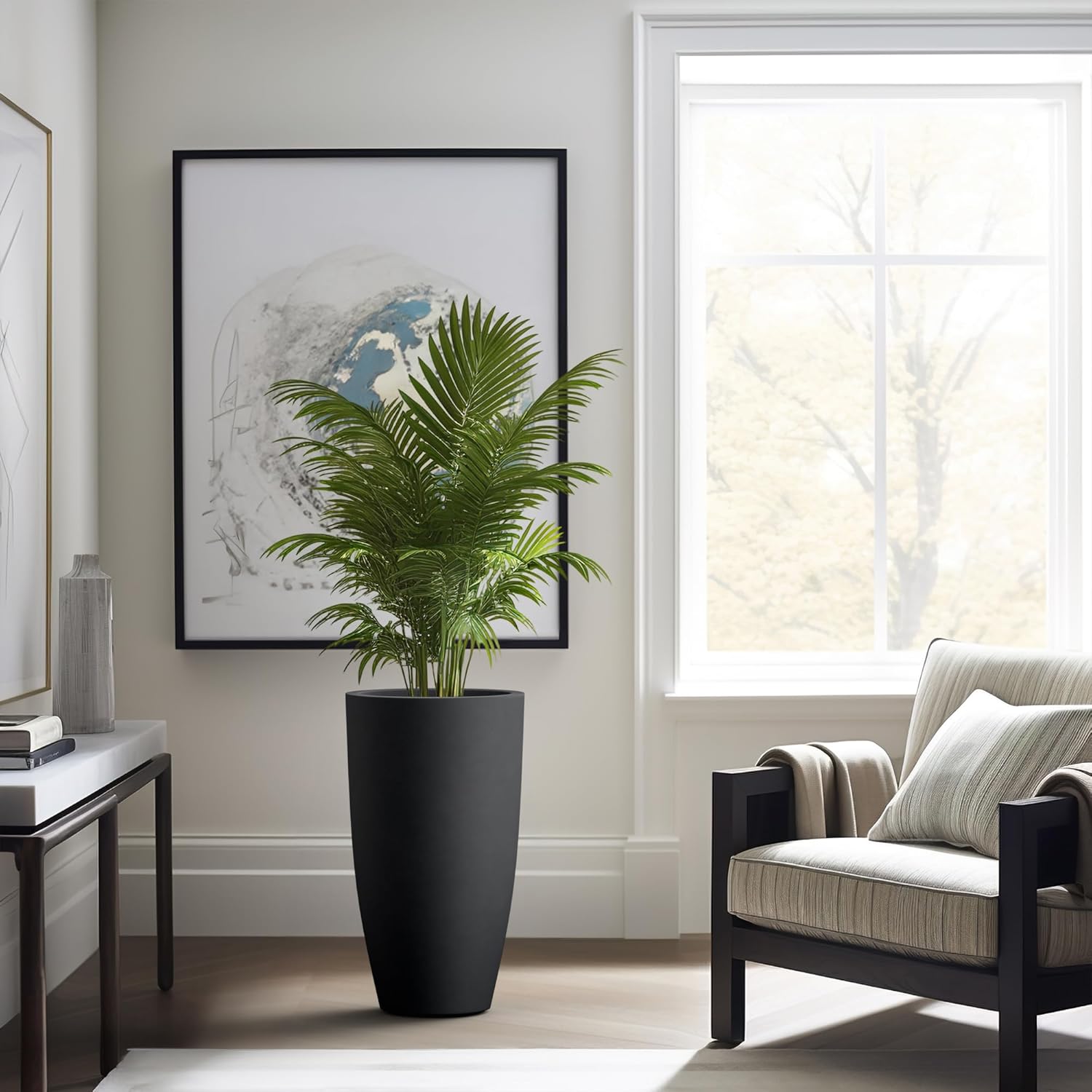 Kante 23.6" H Black Tall Planters (Set of 2), Large Outdoor Indoor Decorative Plant Pots with Drainage Hole and Rubber Plug, Modern Style for Home and Garden