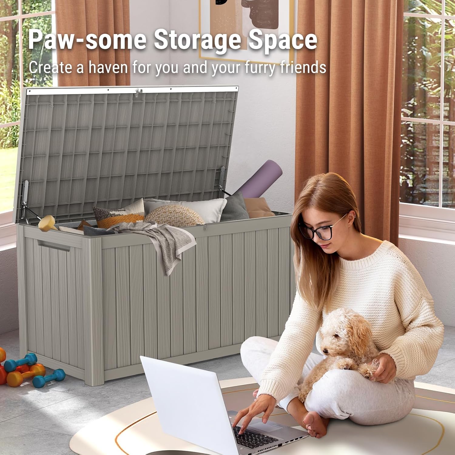 - 【Smooth & Secure Operation】- Designed with dual side hydraulic hinges, the lid opens effortlessly and stays in place, allowing easy access to your items, the slow closing mechanism ensures safe operation for family members, while the lockable lid (lock not included) adds an extra layer of security for your outdoor essentials