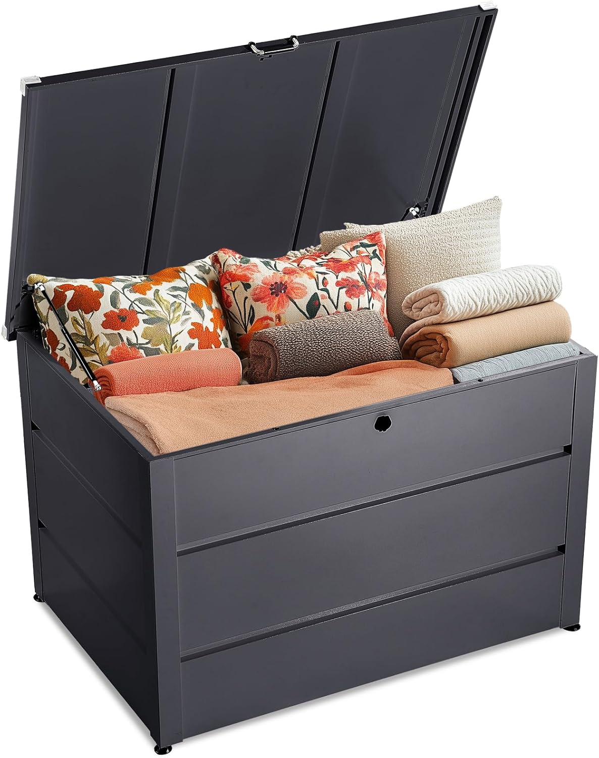 - 【Multifunctional Outdoor Storage/Table】Stores patio cushions, gardening tools, kids’toys, Pool Toys; doubles as a temporary portable table for drinks/snacks. Ideal for patio, garden, poolside