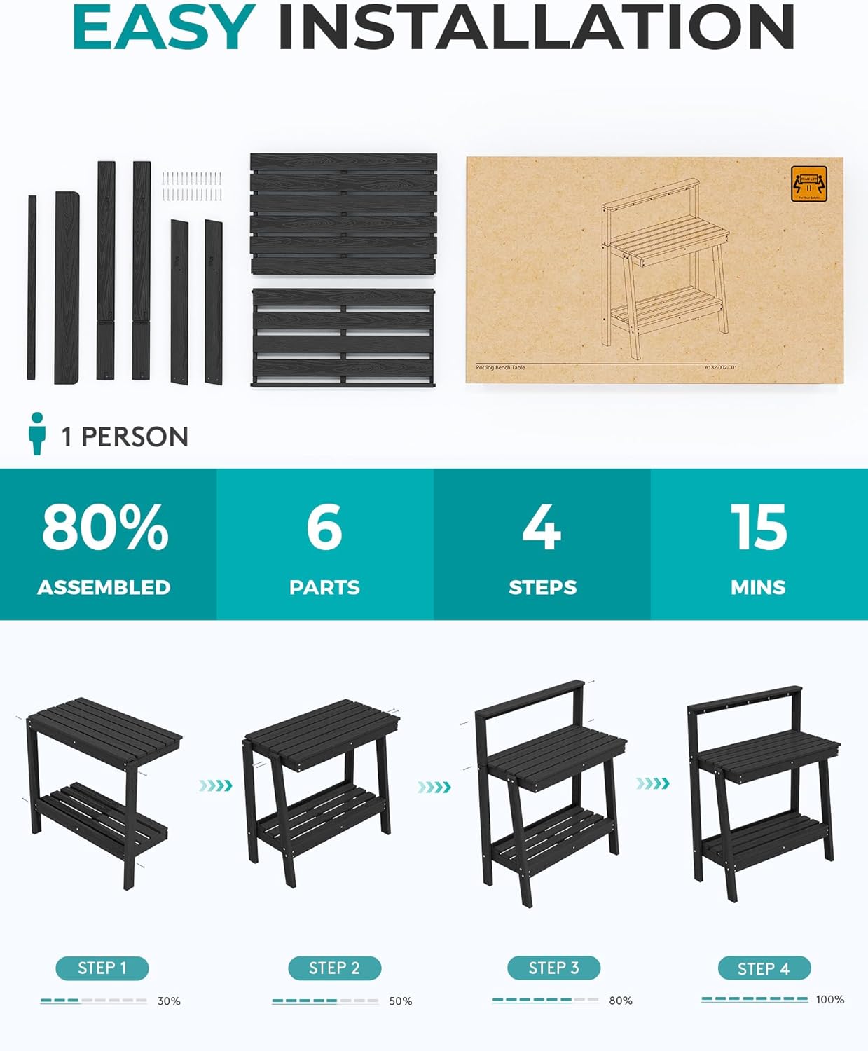 - Quick & Tool-Free Assembly: Everything you need for setup comes in the box. Just follow the straightforward instructions, and you can have your new garden work bench fully assembled and ready to use in under 20 minutes—no extra tools required.